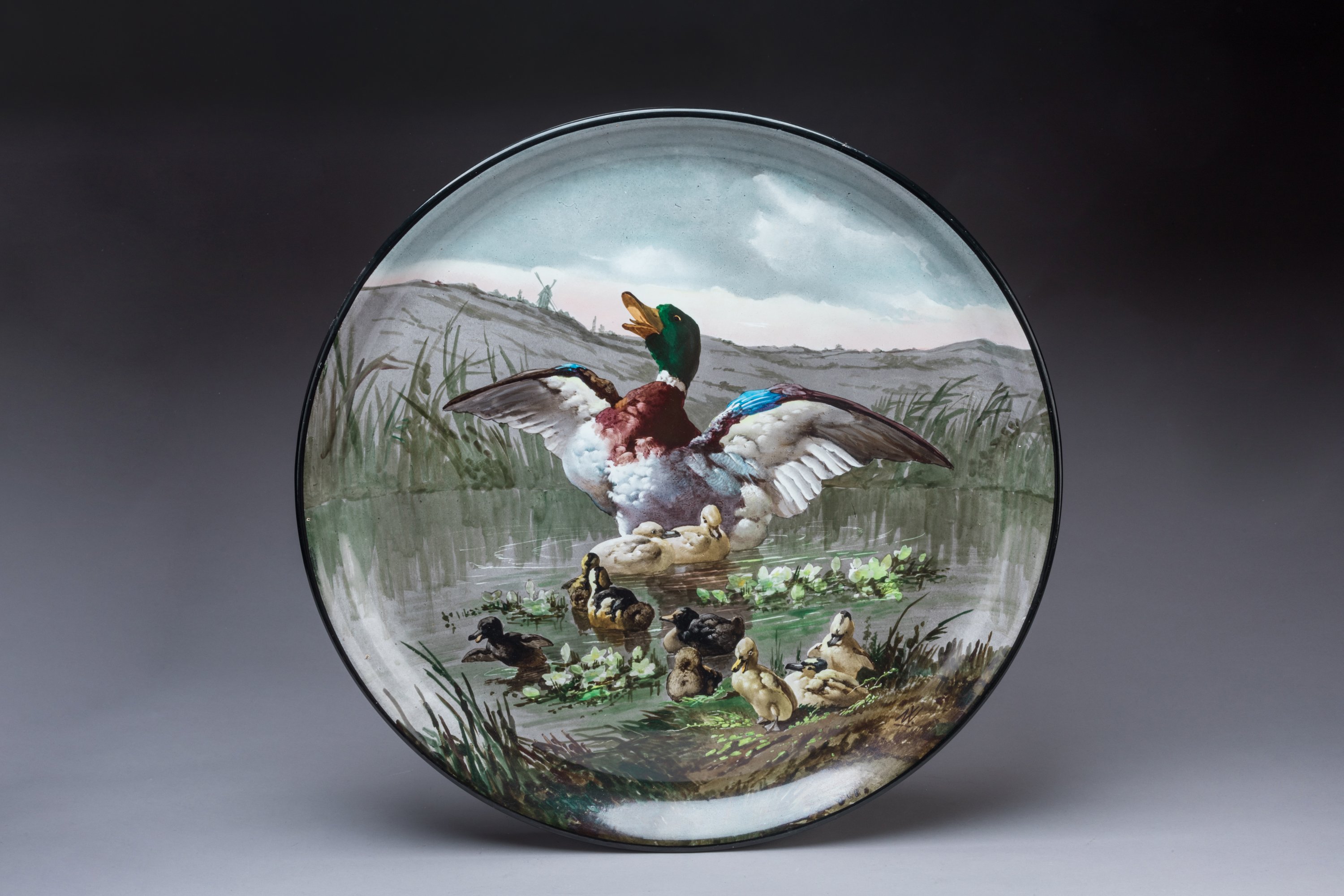 Rare paire de plats en céramique émaillée peinte.