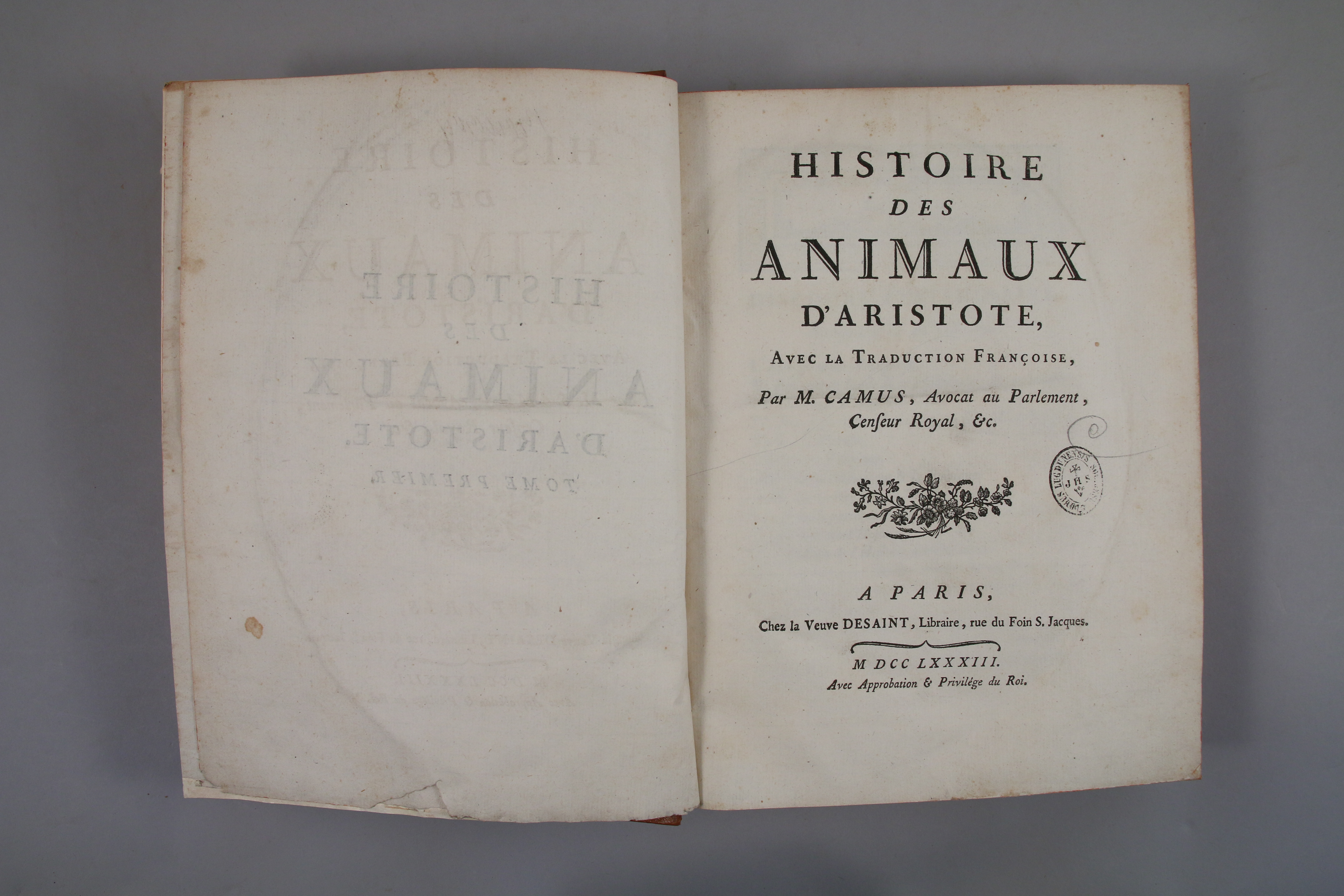 Histoire des animaux d'Aristote. Avec la traduction françoise par M. Camus. [Et] Notes sur l'Histoire des animaux d'Aristote.