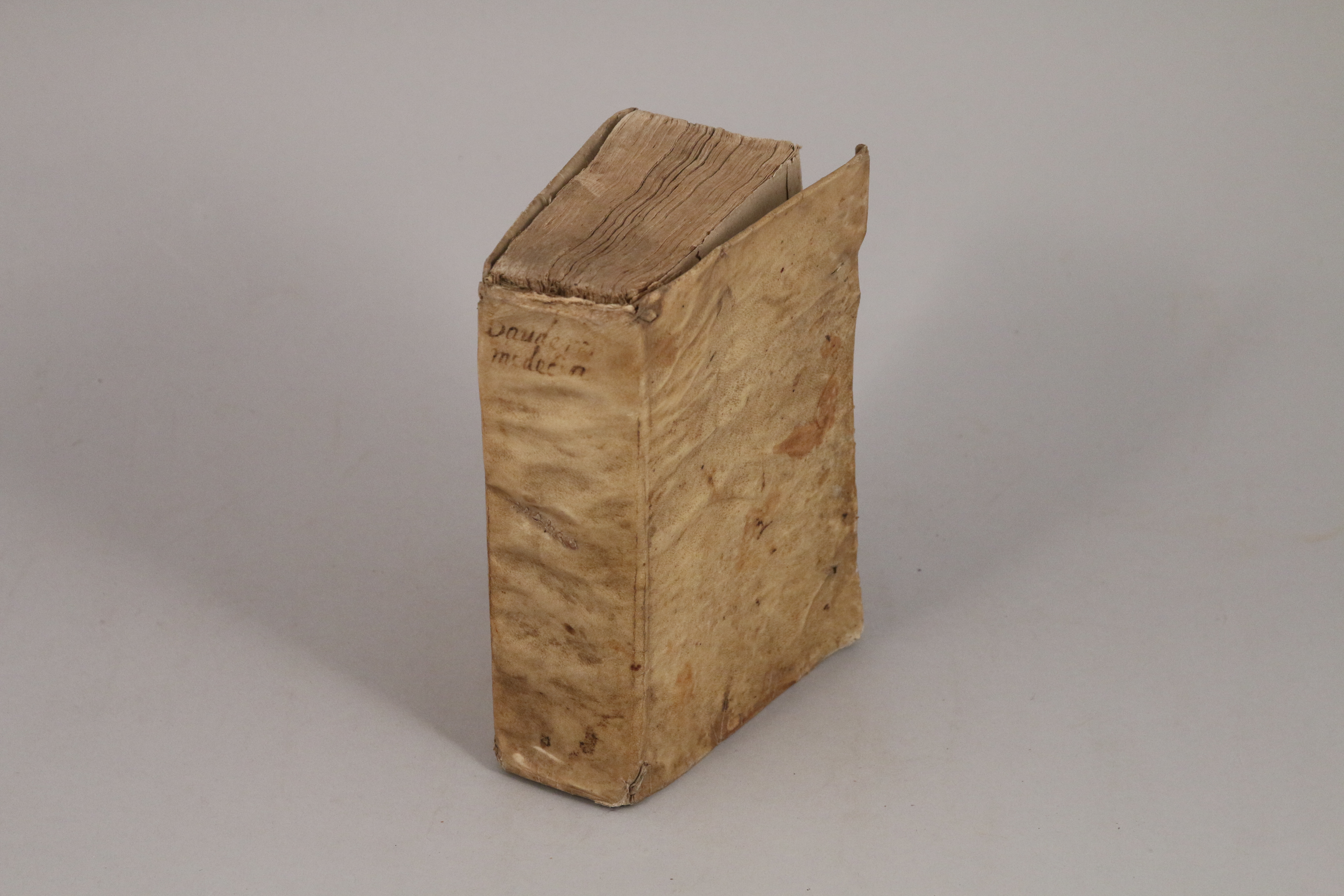 Fort in-8, (8 ff), portrait hors-texte, 526 pages, (9 ff). 32 pages, (4 ff). Vélin souple du temps. (Corps d'ouvrage déboîté ; manque de vélin sur les coupes ; mouillures claires ; quelques salissures).
