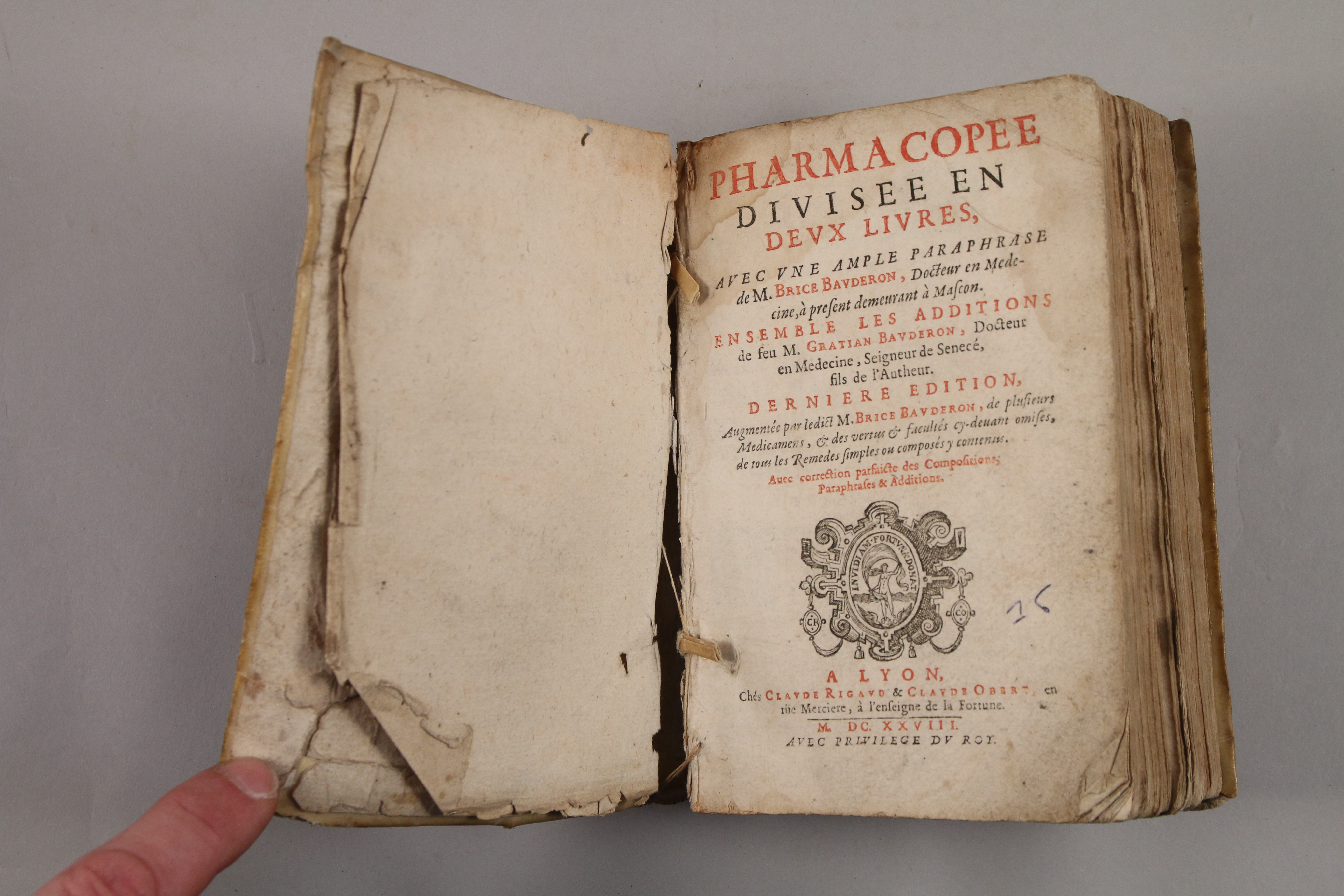 Pharmacopée, divisée en deux livres. Avec une ample paraphrase de M. Brice Bauderon, docteur en médecine à présent demeurant à Mascon, ensemble les additions de feu M. Gratian Bauderon...