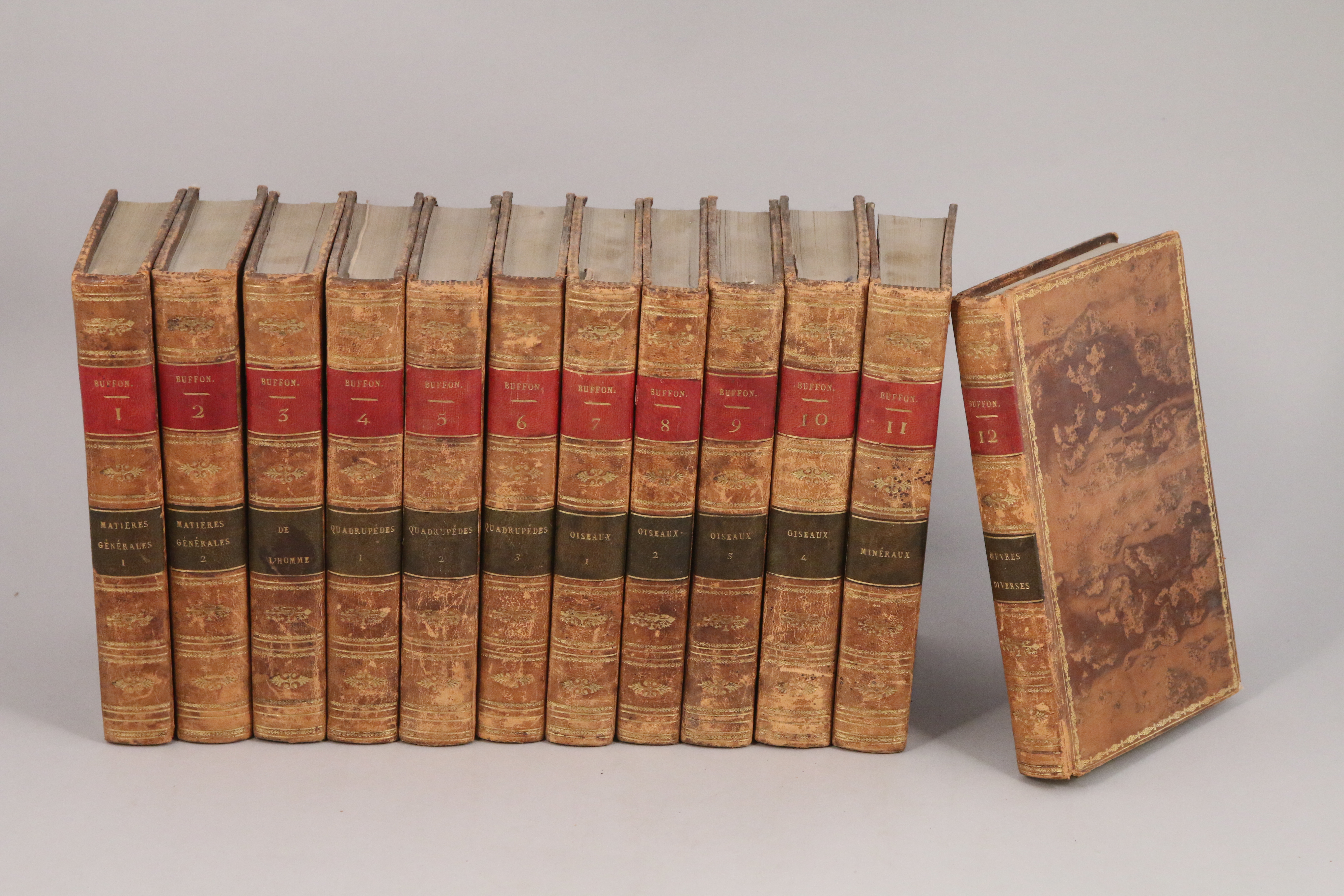 12 volumes in-8, plein veau marbré, roulette d'encadrement, dos sans nerf, pièces de titre de maroquin rouge, pièces de tomaison de maroquin vert. (Rousseurs éparses).