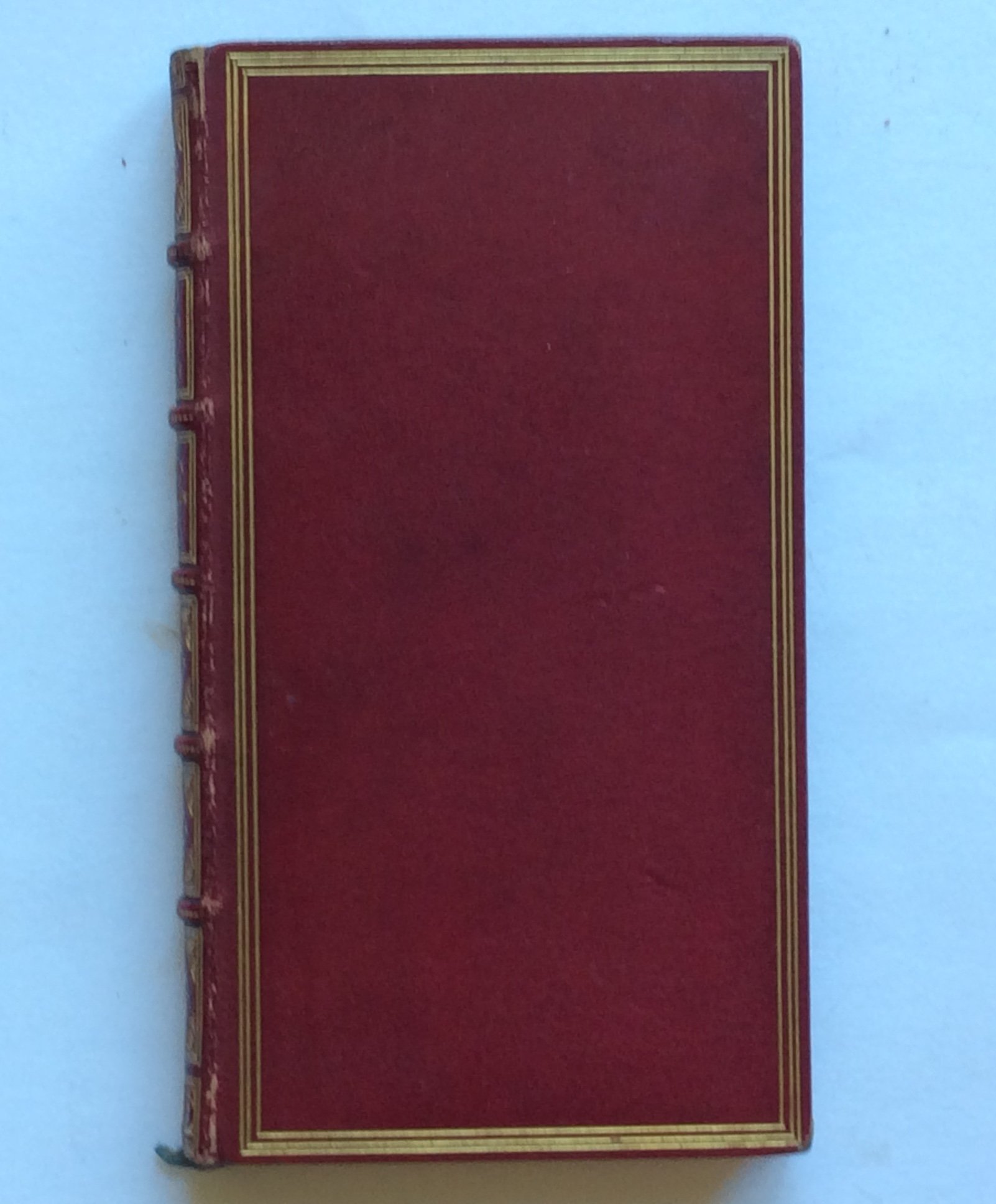 Petit in-12, (12 ff), 202 pages, (1 f. blanc). Plein maroquin cerise, triple filet doré sur les plats, dos à 5 nerfs très orné ; roulettes intérieures ; toutes tranches dorées. Exemplaire lavé. Reliure établie entre 1840 et 1850, signée Bauzonnet-Trautz.