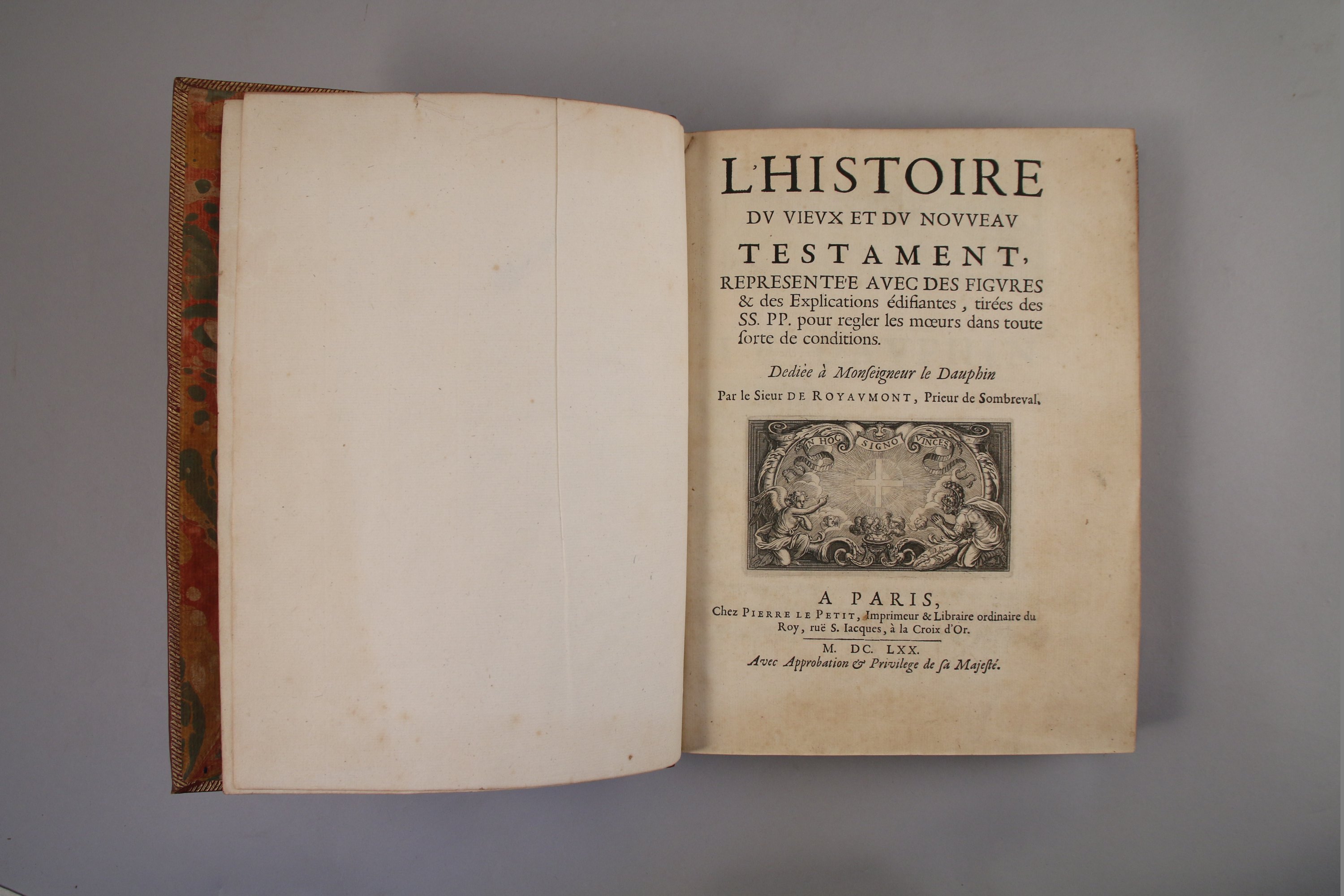 L'Histoire du Vieux et du Nouveau Testament représentée avec des figures et des explications édifiantes tirées des SS. PP.... Dédiée à Monseigneur le Dauphin par le Sieur de Royaumont, Prieur de Sombreval.