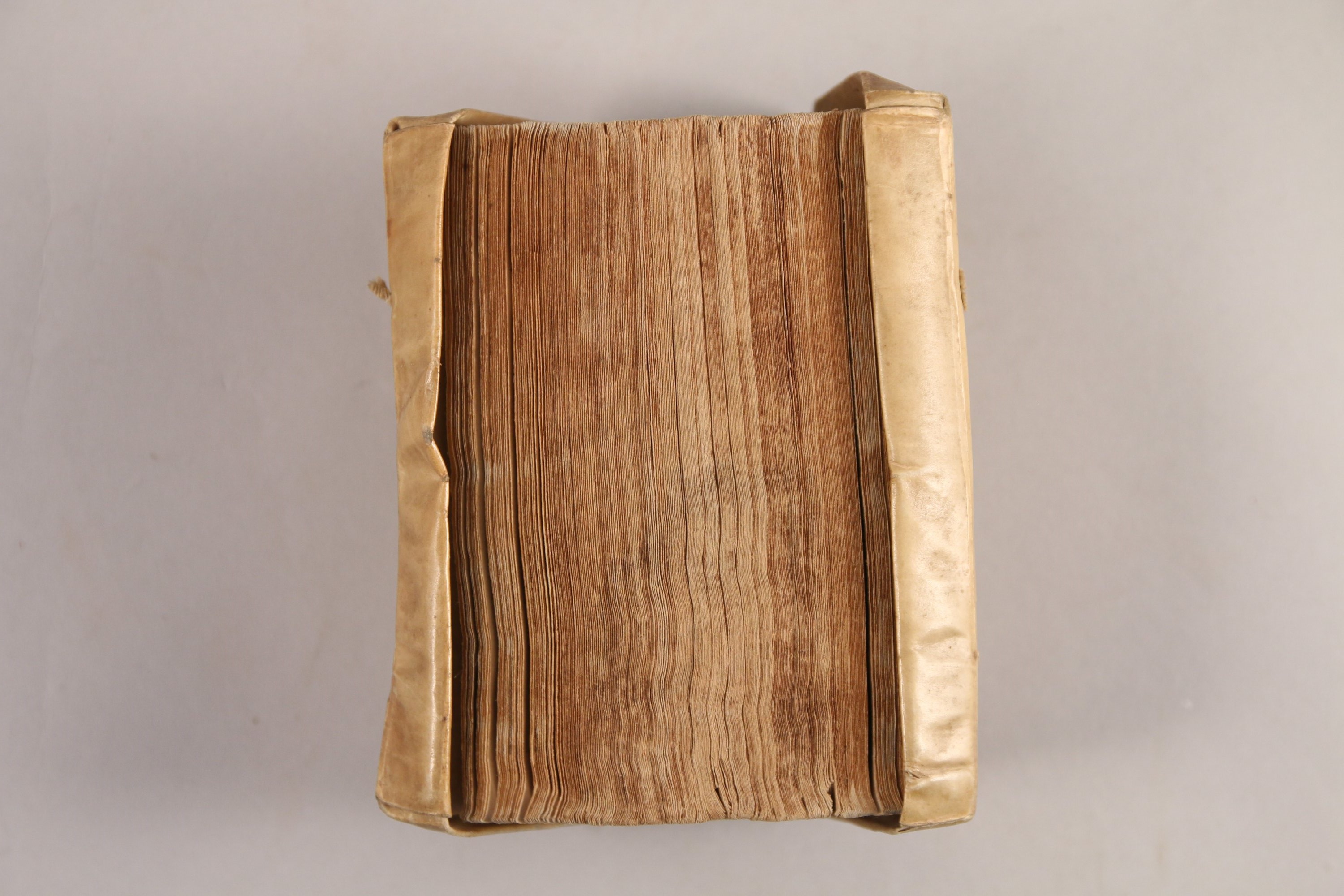In-24, 528 pages entièrement interfoliées -sauf celles de l'index- de feuillets restés vierges. Vélin ivoire à six recouvrements. Reliure du temps. (Mouillures claires et saines dans plus de la moitiè de l'ouvrage.