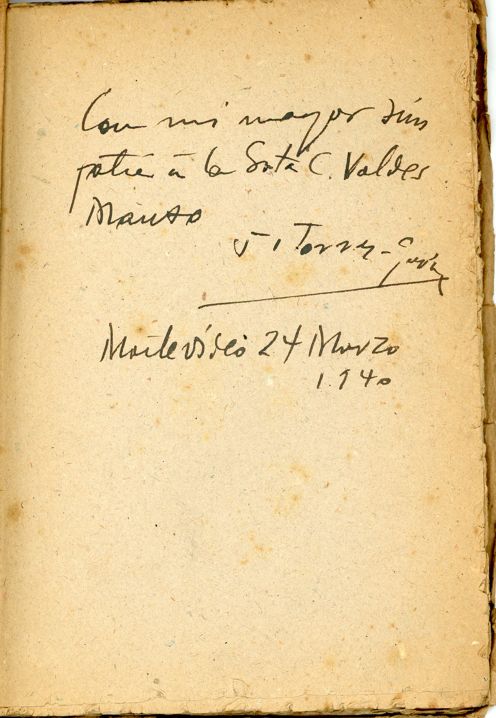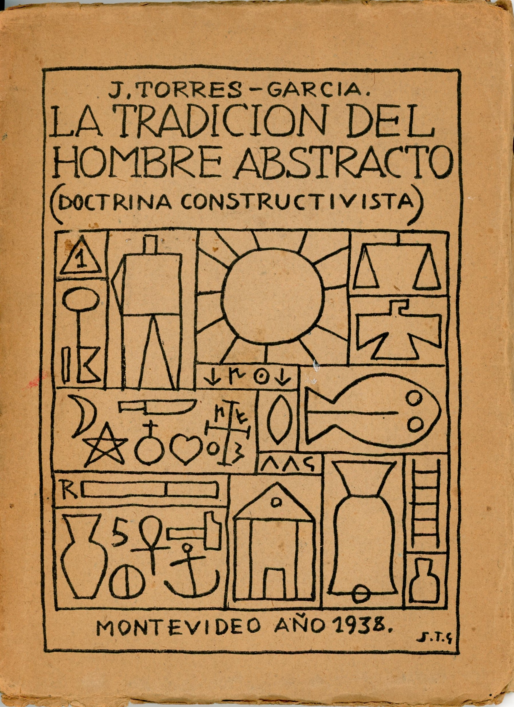 LA TRADITION DEL HOMBRE ABSTRACTO (DOCTRINA CONSTRUCTIVISTA), Montevideo, 1938, br. in-8. Couverture imprimée, illustrée par l'artiste, autre dessin au dos. Edition originale. Avec envoi autographe de l'auteur signé et daté. Dans un emboitage cartonné. Rare.