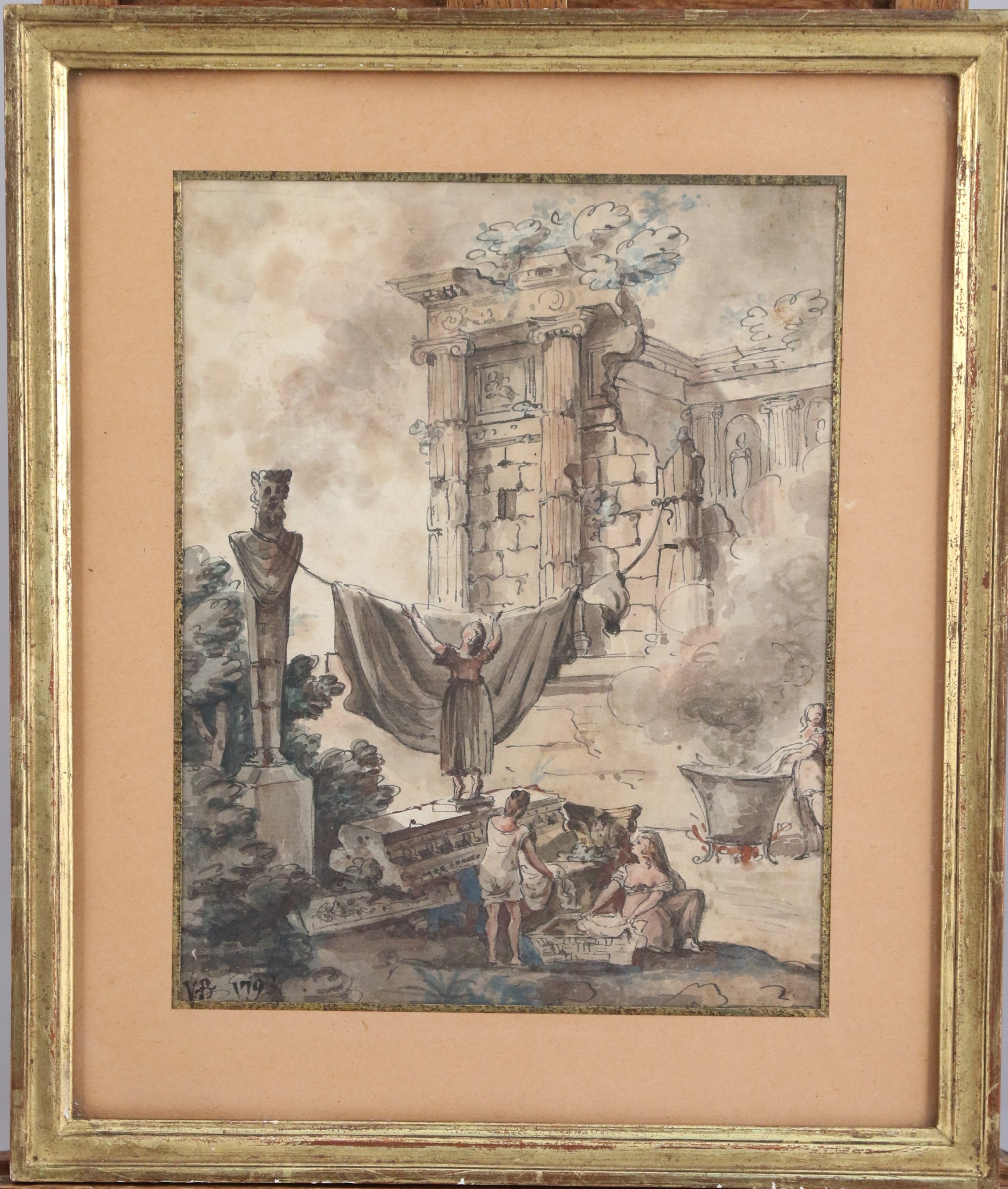 Encre, lavis et aquarelle monogrammé en bas à gauche "VB" et daté "1793".