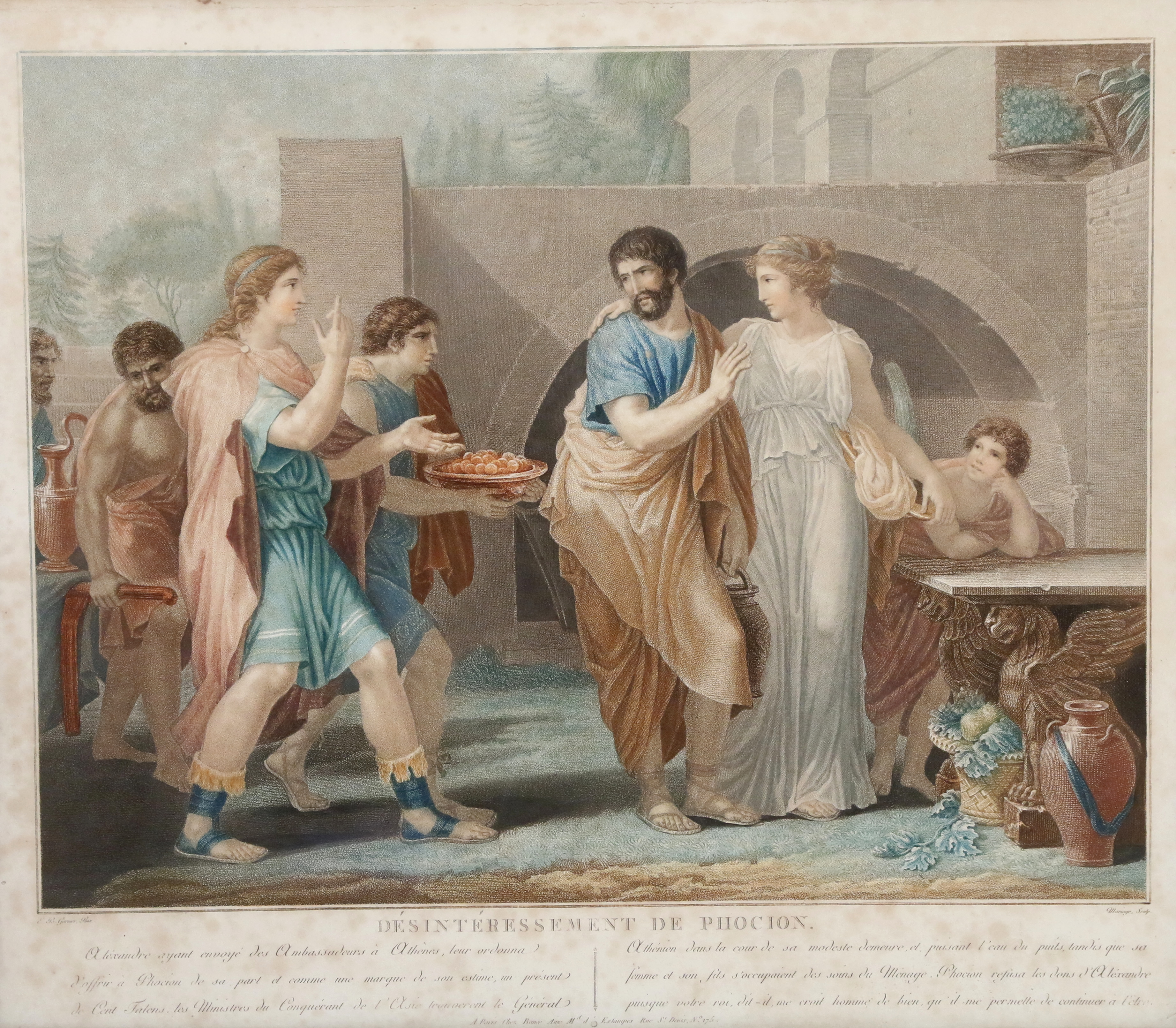 JOINT: Chromolithographie d'après Garnier , Achille Reconnu par Ulysse. Légendée "Désintéressement de Phocion". Début du XIXe. Haut. 39, Larg. 44 cm (à vue).