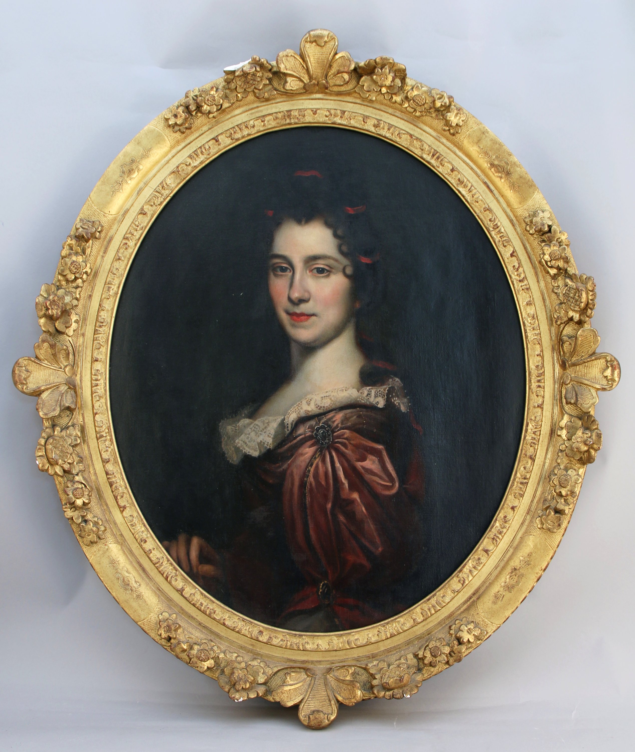 Porte une inscription manuscrite sur le châssis: " Noble Dame Marie de Morand Courseulles née au château de Courseulles le 19 août 1657 + au château de Cristot le 6 novembre 1695. Fille de Nicolas Claude de Morand chevalier Baron de Courseulles et de noble dame Marie-Charlotte de Hacqueville épouse de noble homme Messire Pierre du Buisson chevalier sieur de Courson seigneur et patron de Cristot et Brouay ".