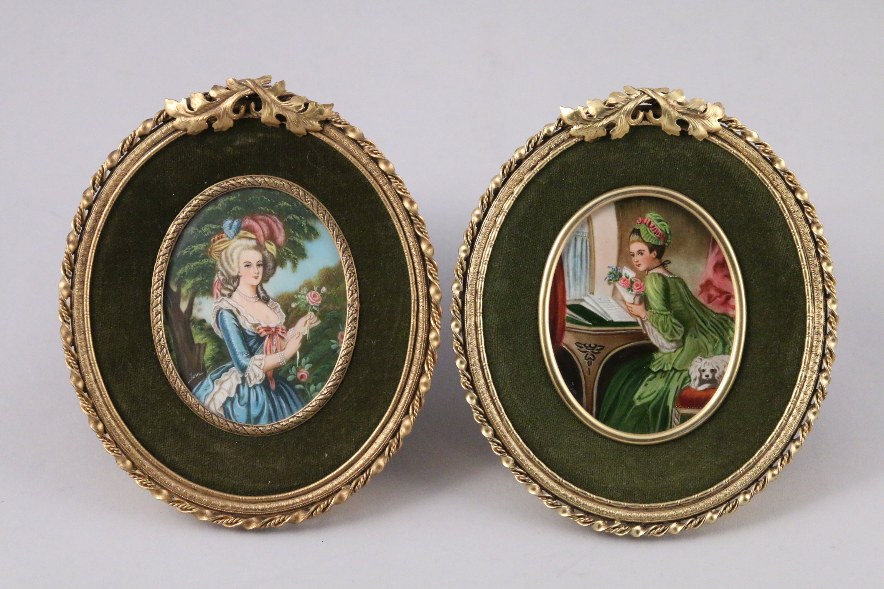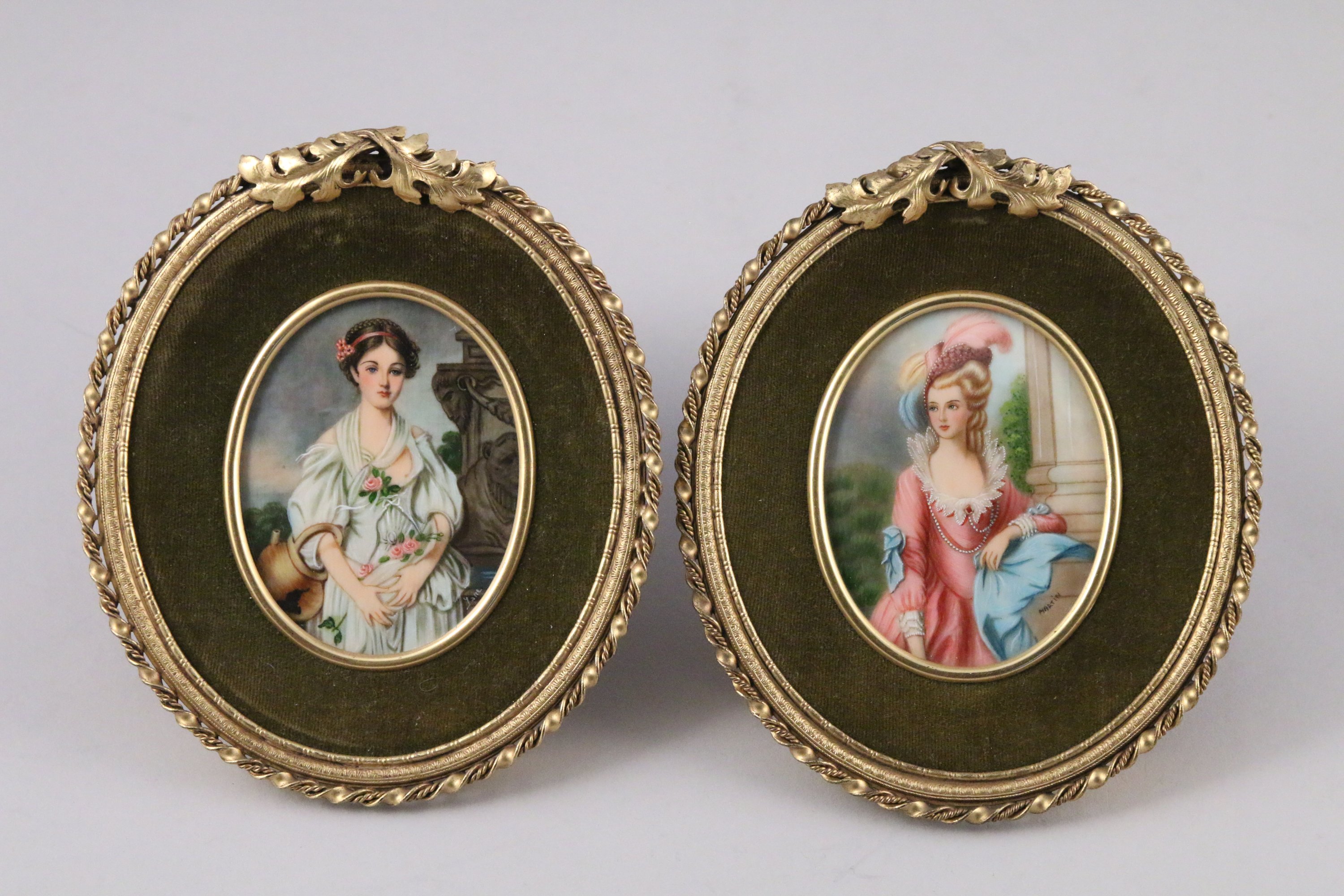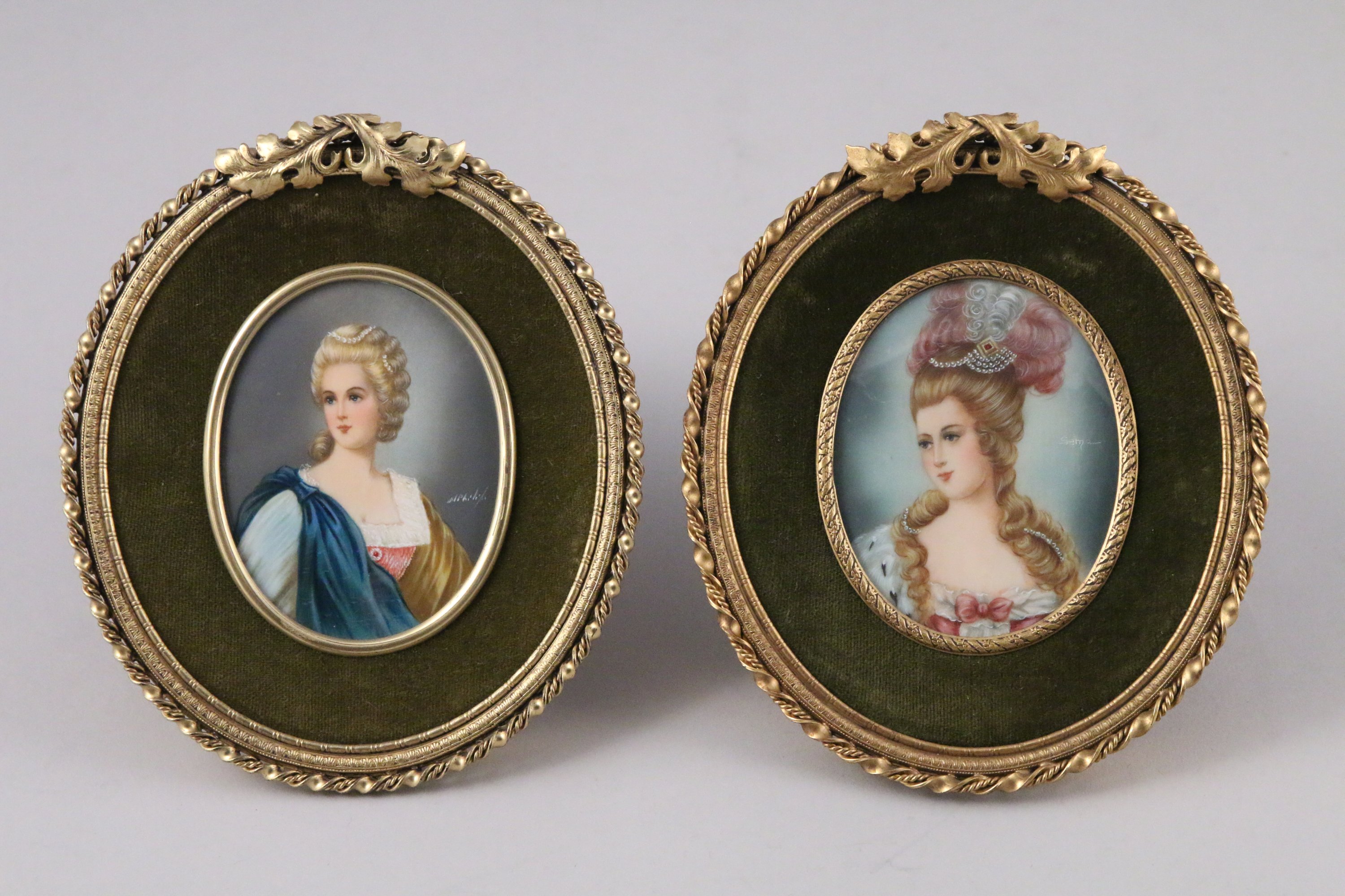 ovales sur ivoire représentant des souveraines et des dames de cour, d'après des peintres du XVIIIe et XIXe. Deux signées.
