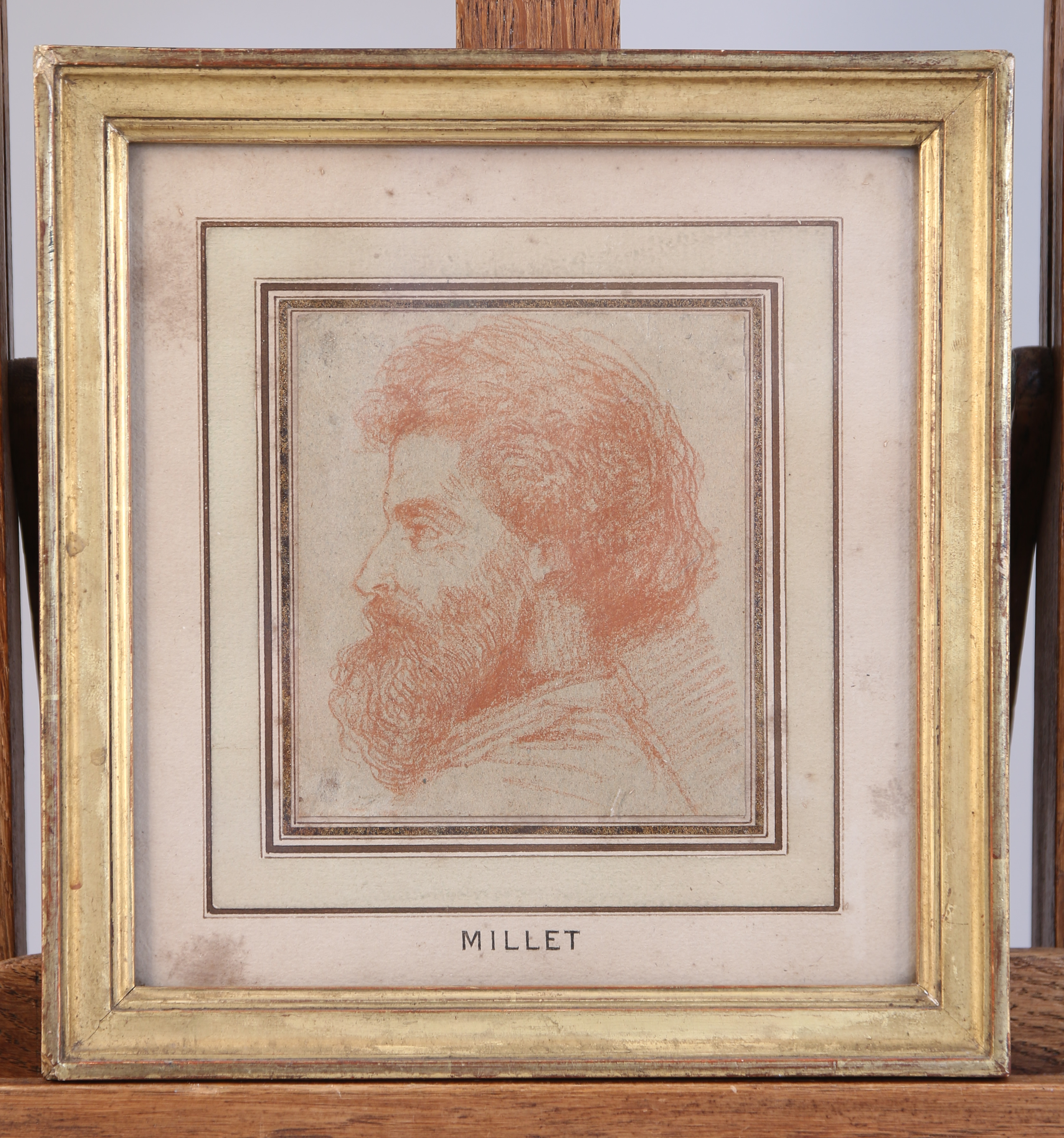 Dans le goût de Jean François MILLET (1814-1875)Portrait d'homme.Sanguine.Haut. 10,2...