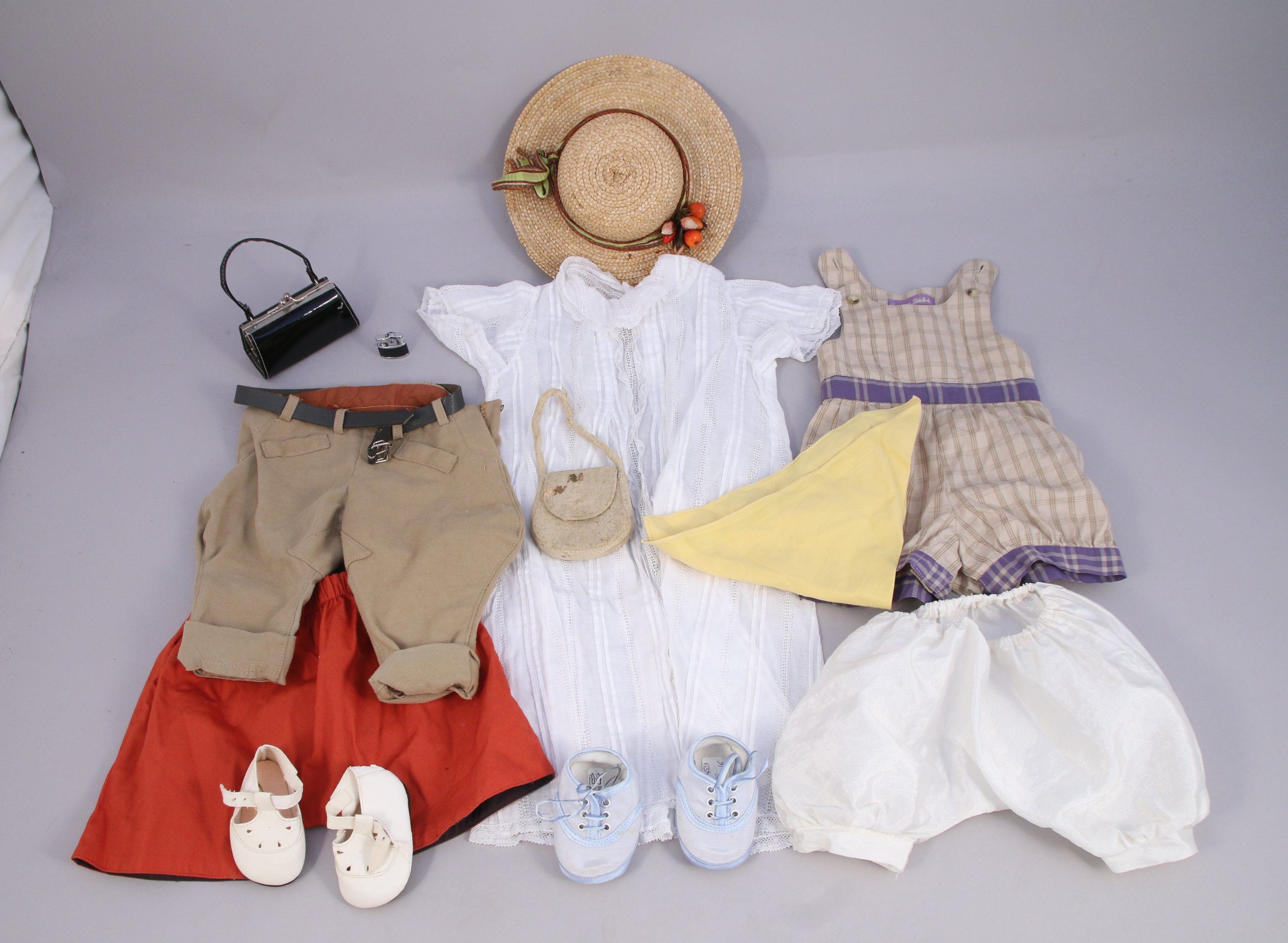 Joint: un ensemble de vêtements dont un chapeaux, plusieurs robes et des manteaux.