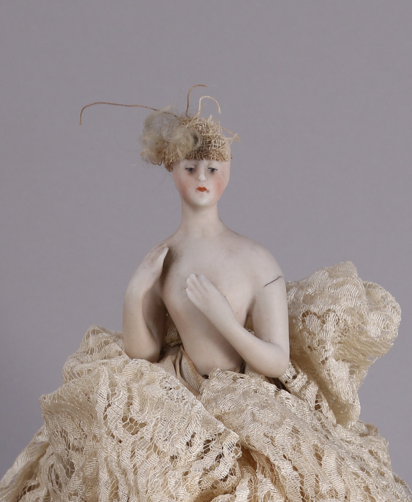 BUSTE de FEMME en porcelaine émergeant d'une ample robe à armature.