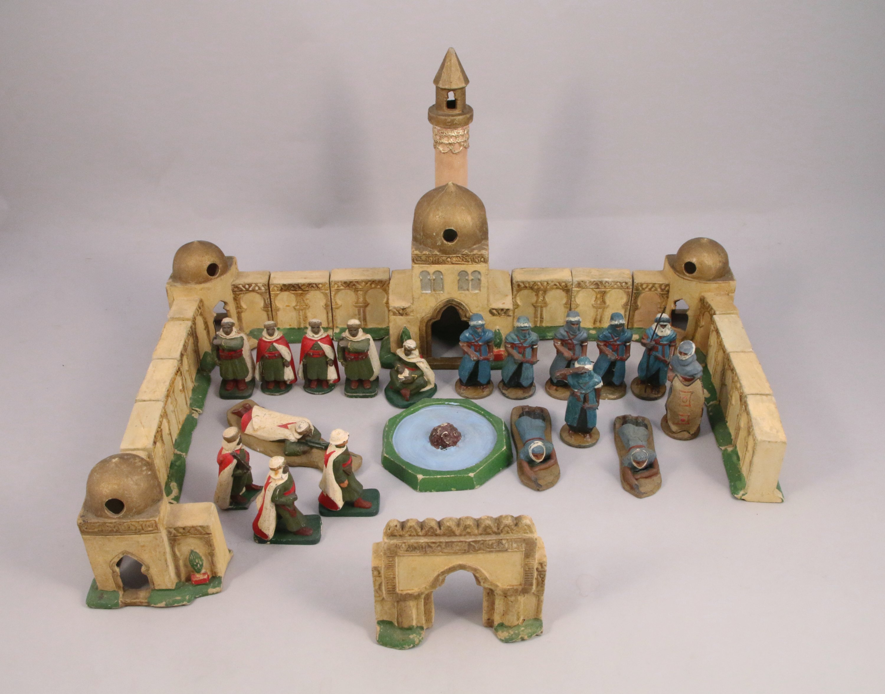 composé de seize éléments d'architecture dont un minaret, une porte crénelée, dix éléments de muraille, une fontaine, trois pavillons d'angle, un grand pavillon central ouvert par une porte à l'arc outrepassé et surmonté d'un dôme. Dix-huit personnages, neuf touaregs et neuf soldats d'infanterie coloniale, s'affrontent pour la prise.