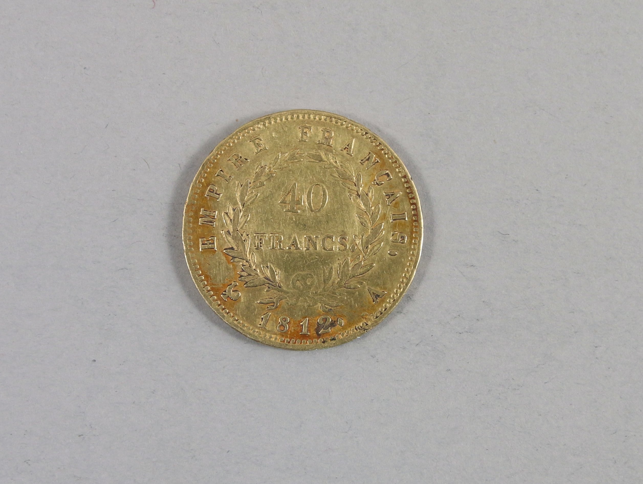 FRANCE. 1 x 40 F. or Napoléon Ier, tête laurée, 1812.