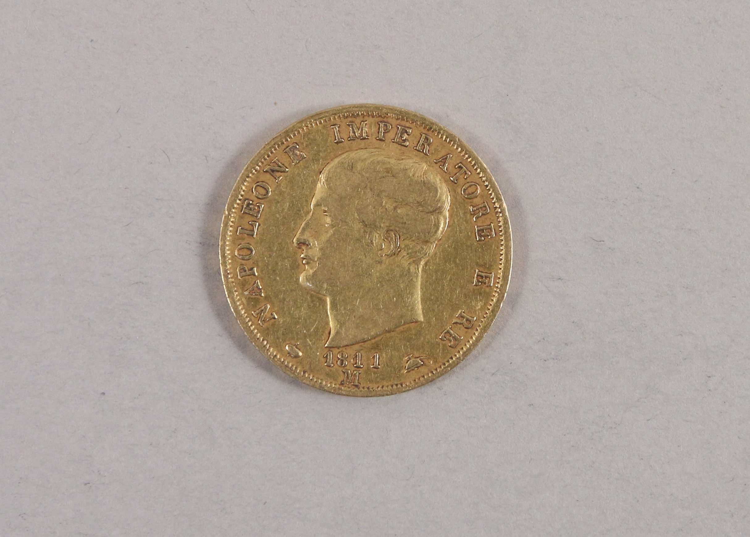 FRANCE, 1er EMPIRE, ROYAUME d'ITALIE or. 1 pièce de 40 Lires or. Bonaparte de profil, Toulouse, 1811.