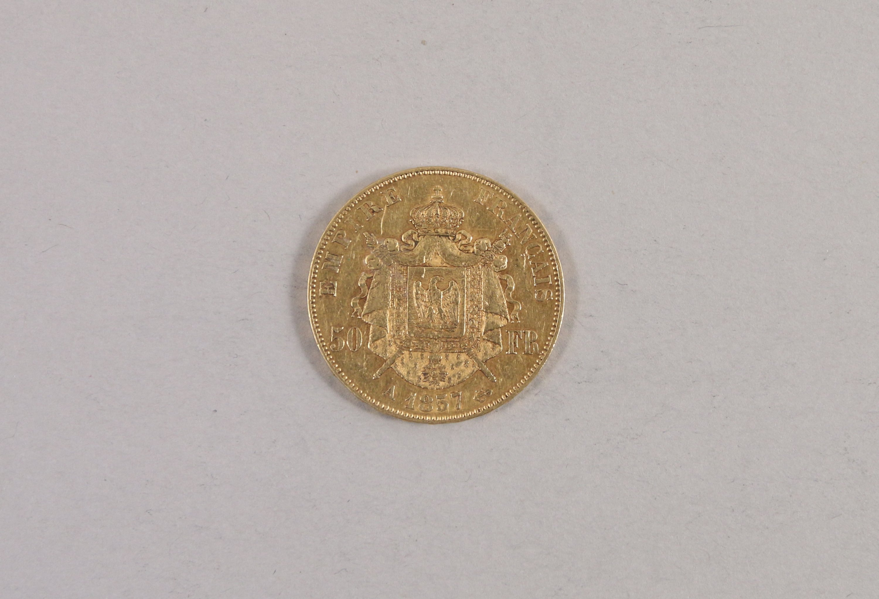 FRANCE,2nd EMPIRE. 1 pièce de 50 Francs or. Napoléon III tête nue, 1857.