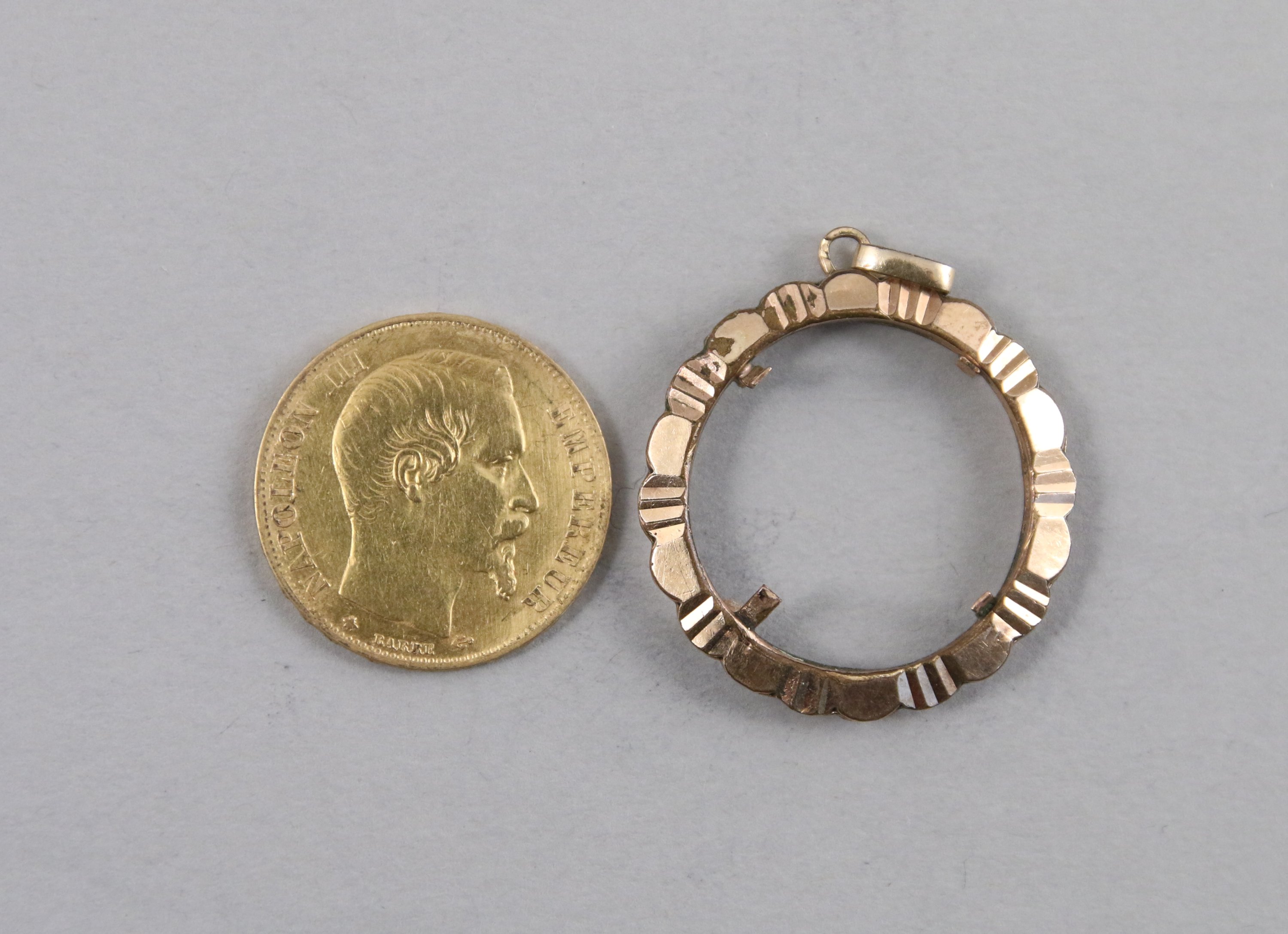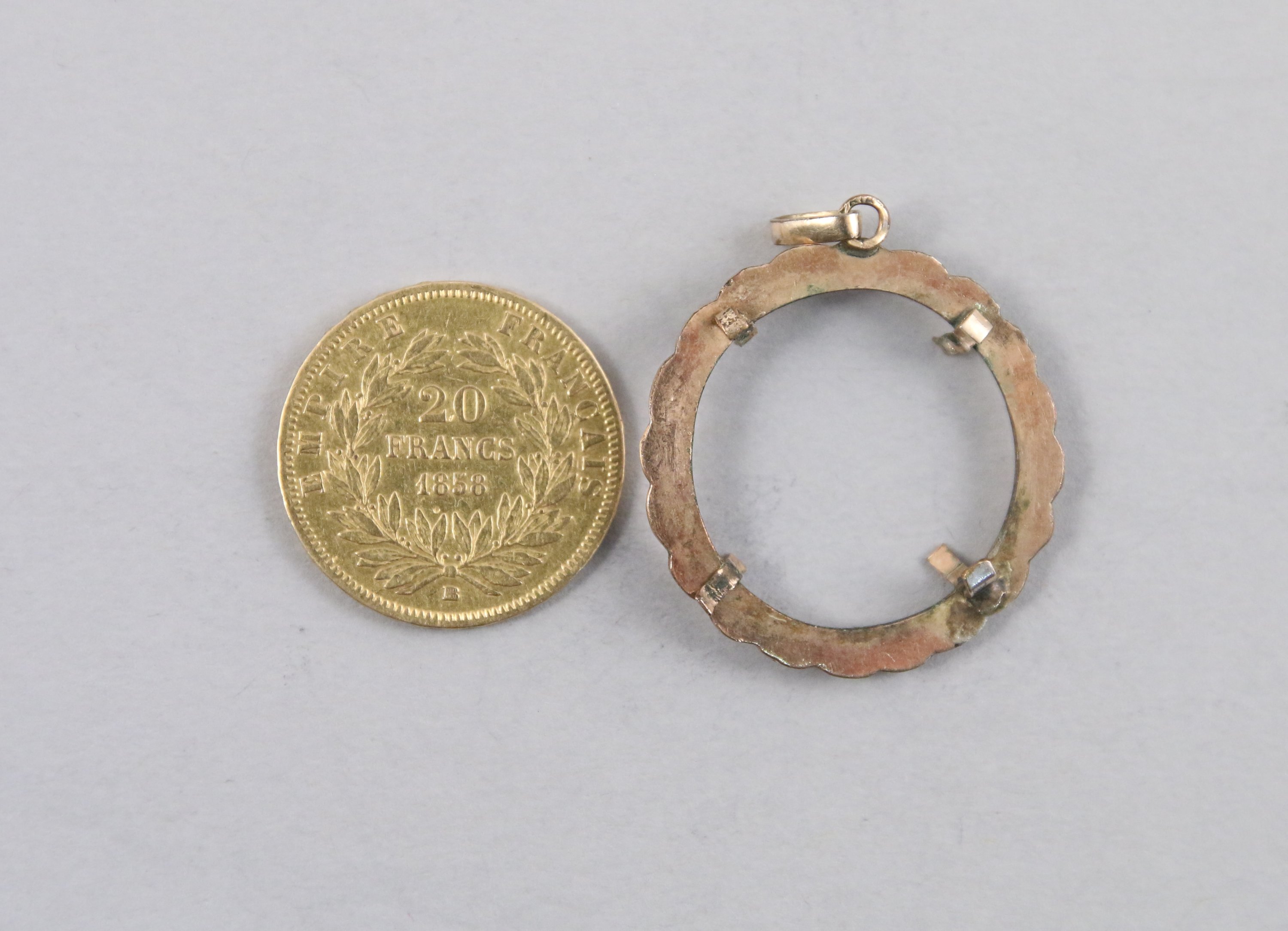 FRANCE. 1 x 20 F. or Napoléon III, tête nue, 1858. (joint monture dorée)