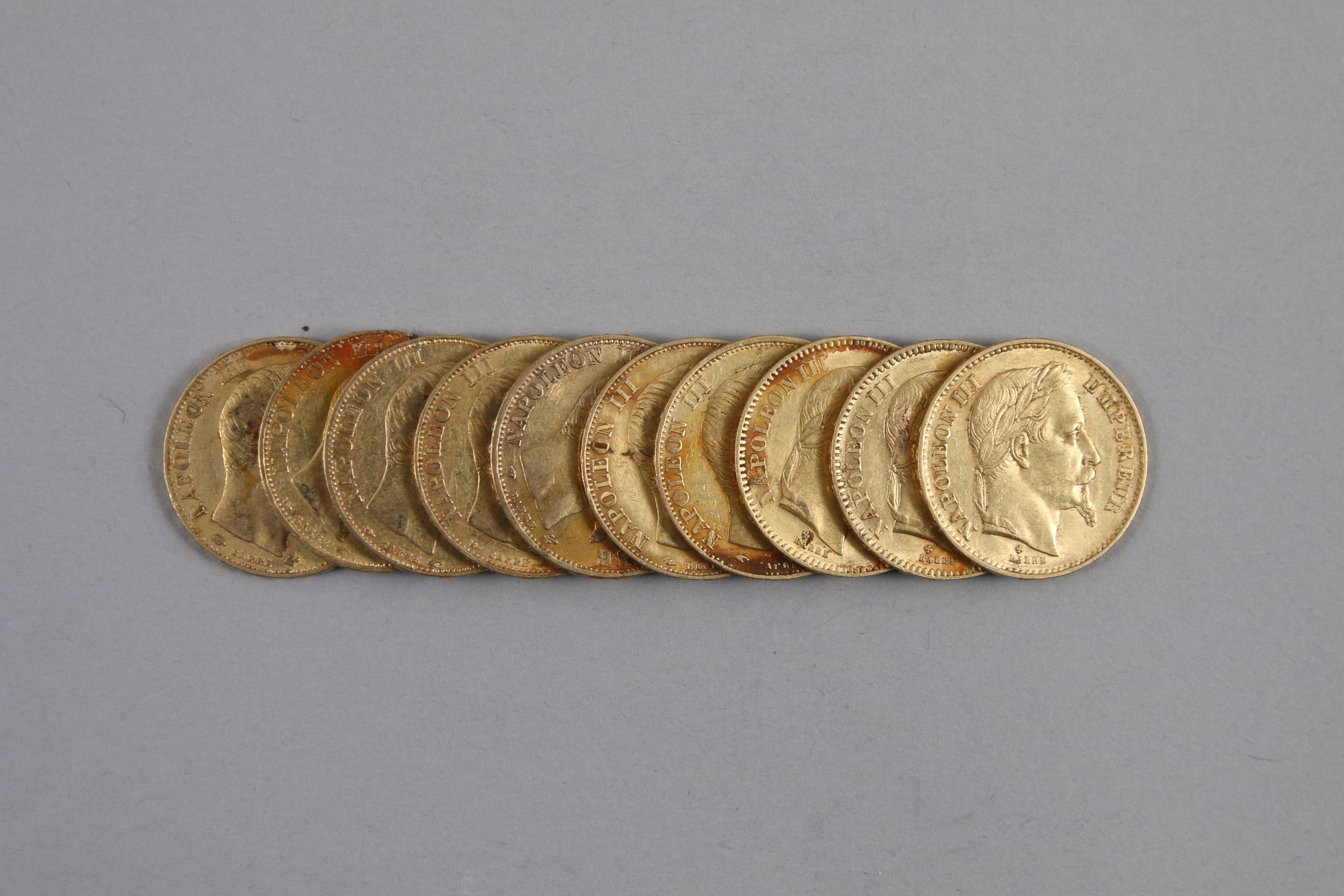 FRANCE. 10 x 20 F. orNapoléon III,  3 tête...