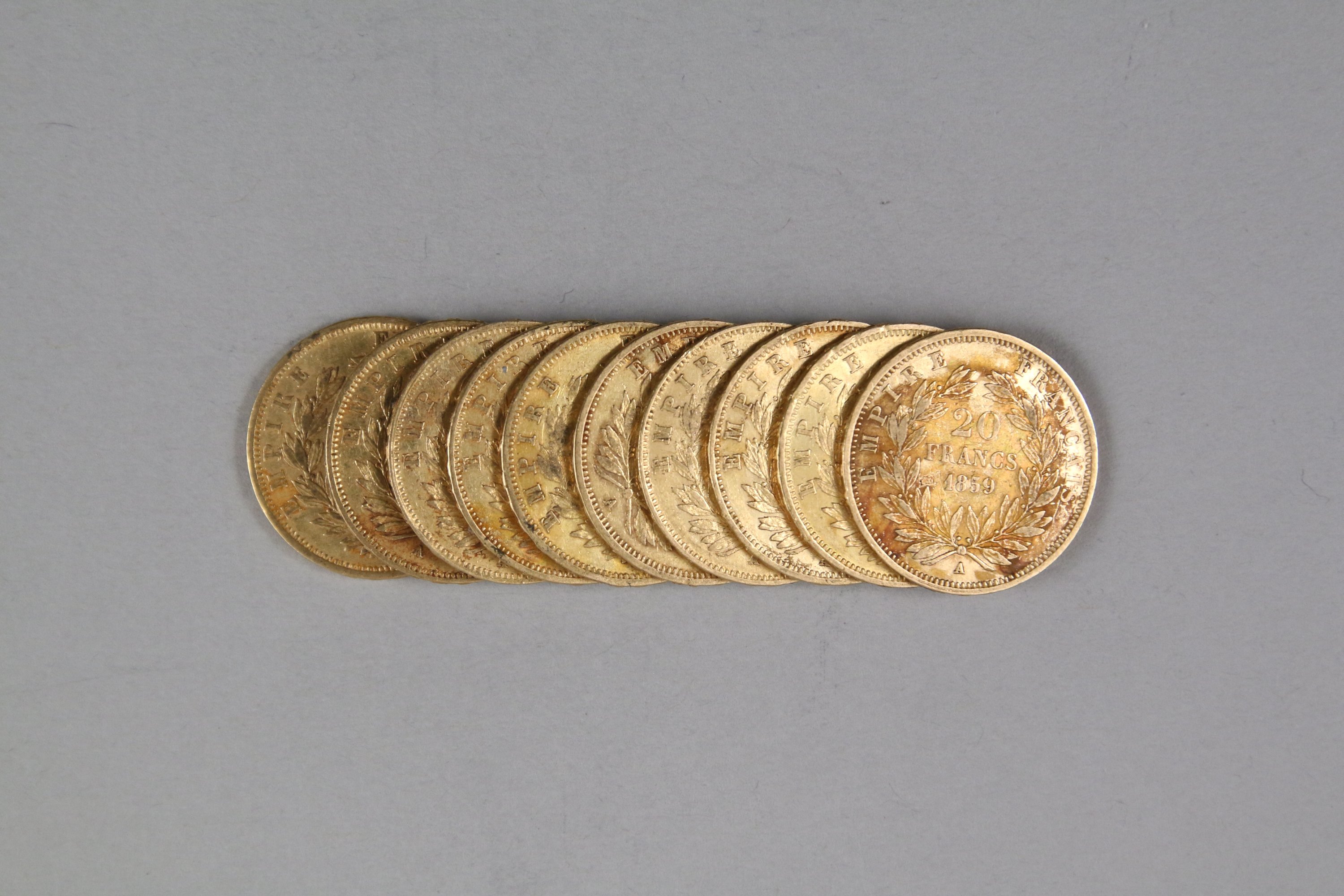 Napoléon III tête nue: 1857 (3), 1858 (2), 1859 (4), 1860 (1)
