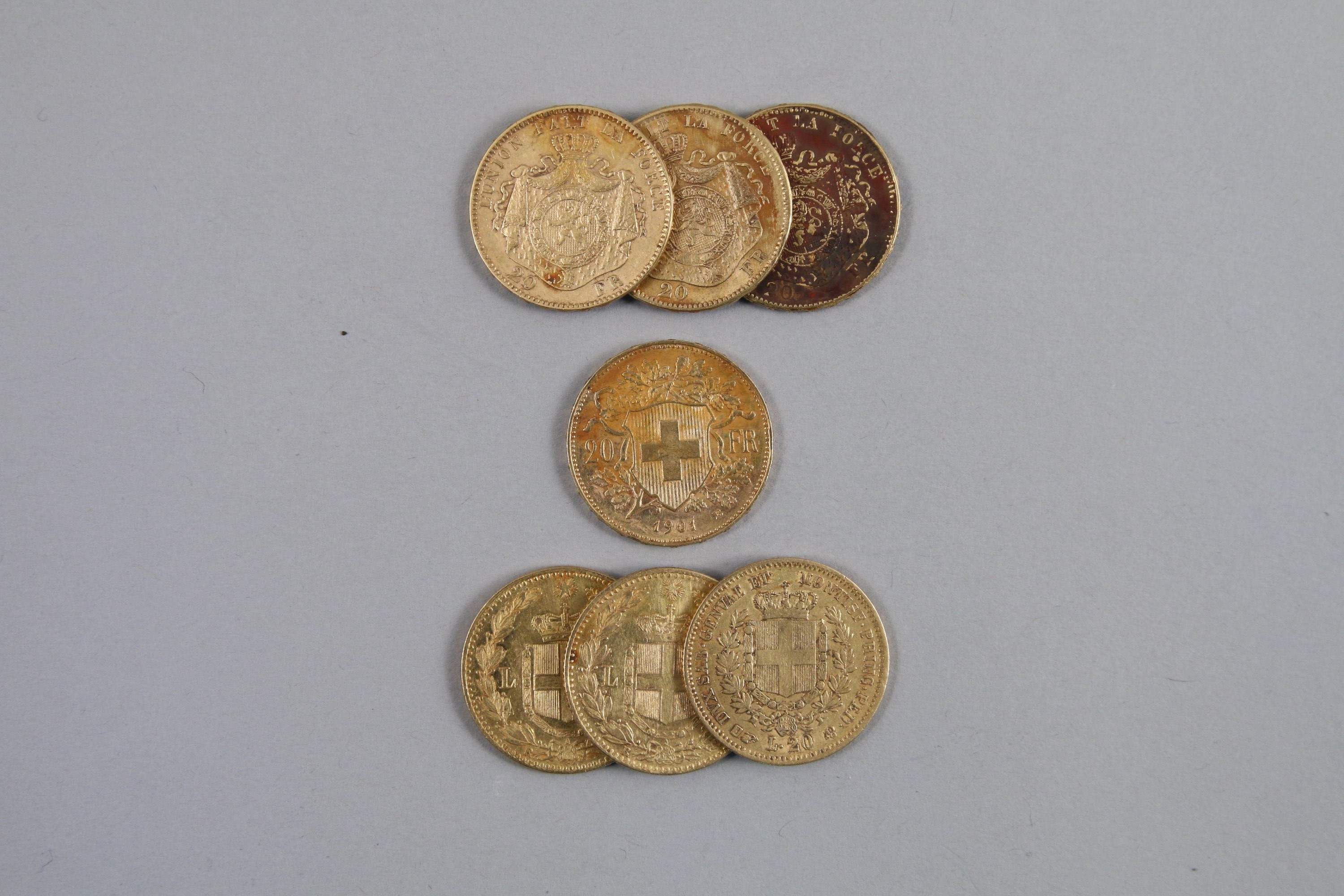 EUROPE. Réunion de 7 monnaies or :ITALIE. 3 x 20...