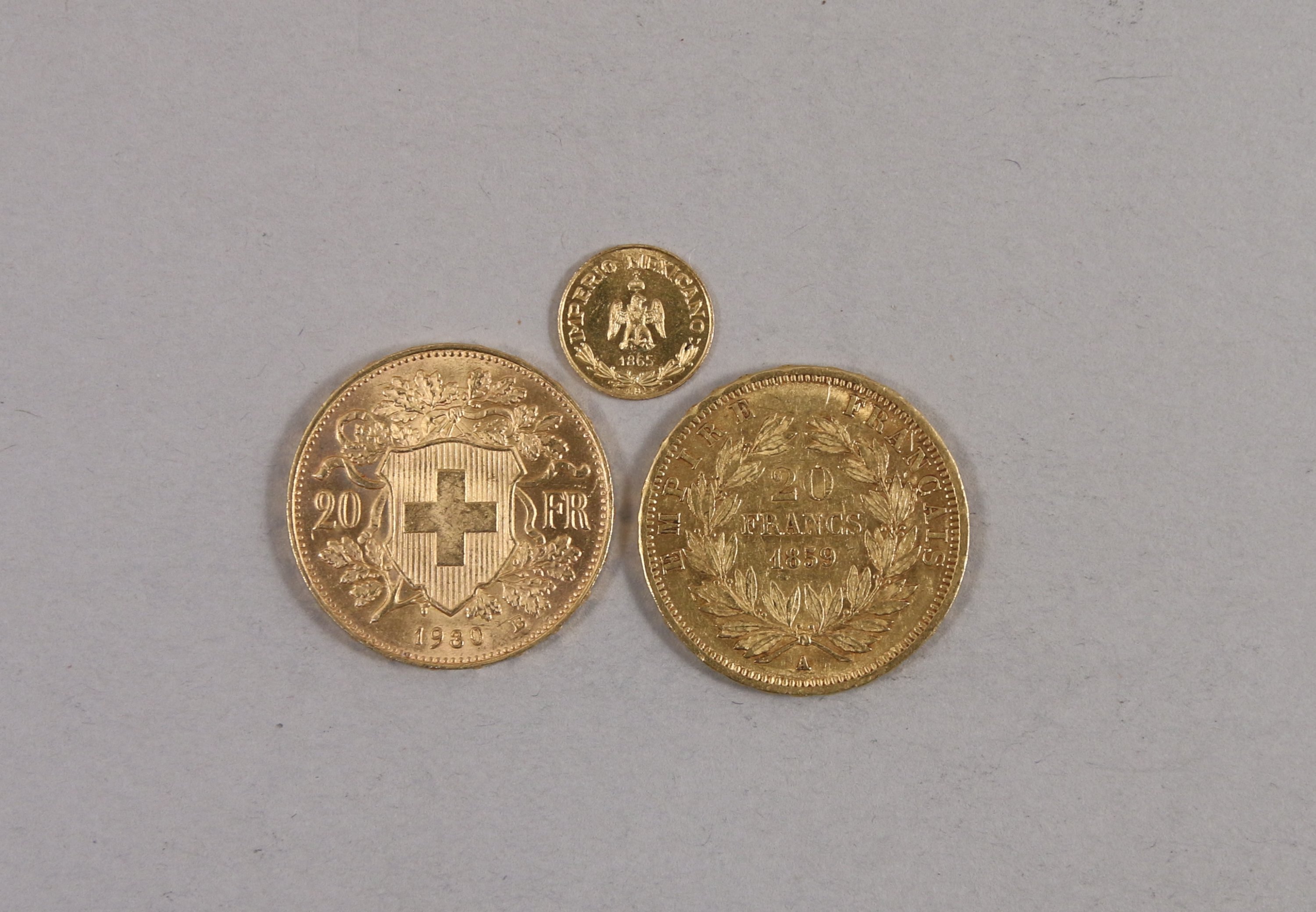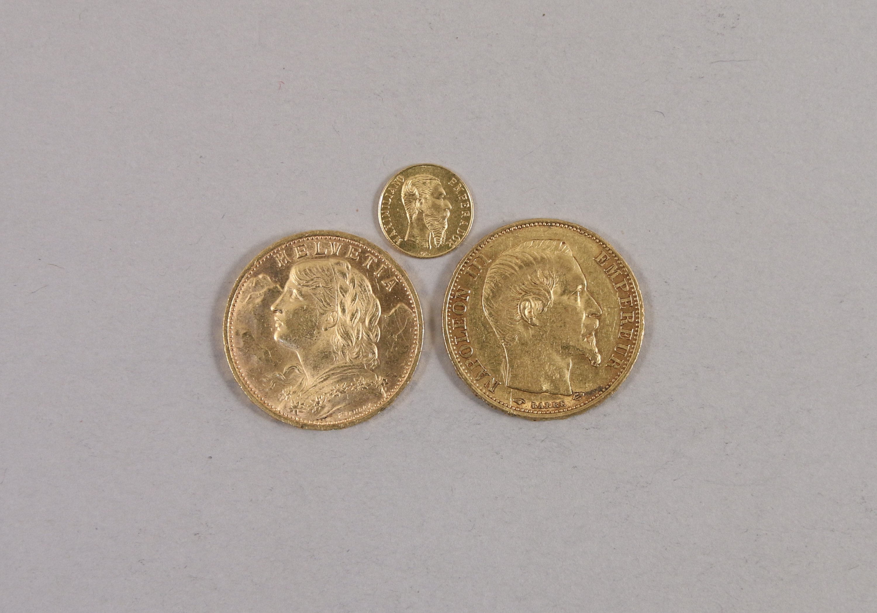 EUROPE et MEXIQUE. Réunion de 3 monnaies or :FRANCE 1...