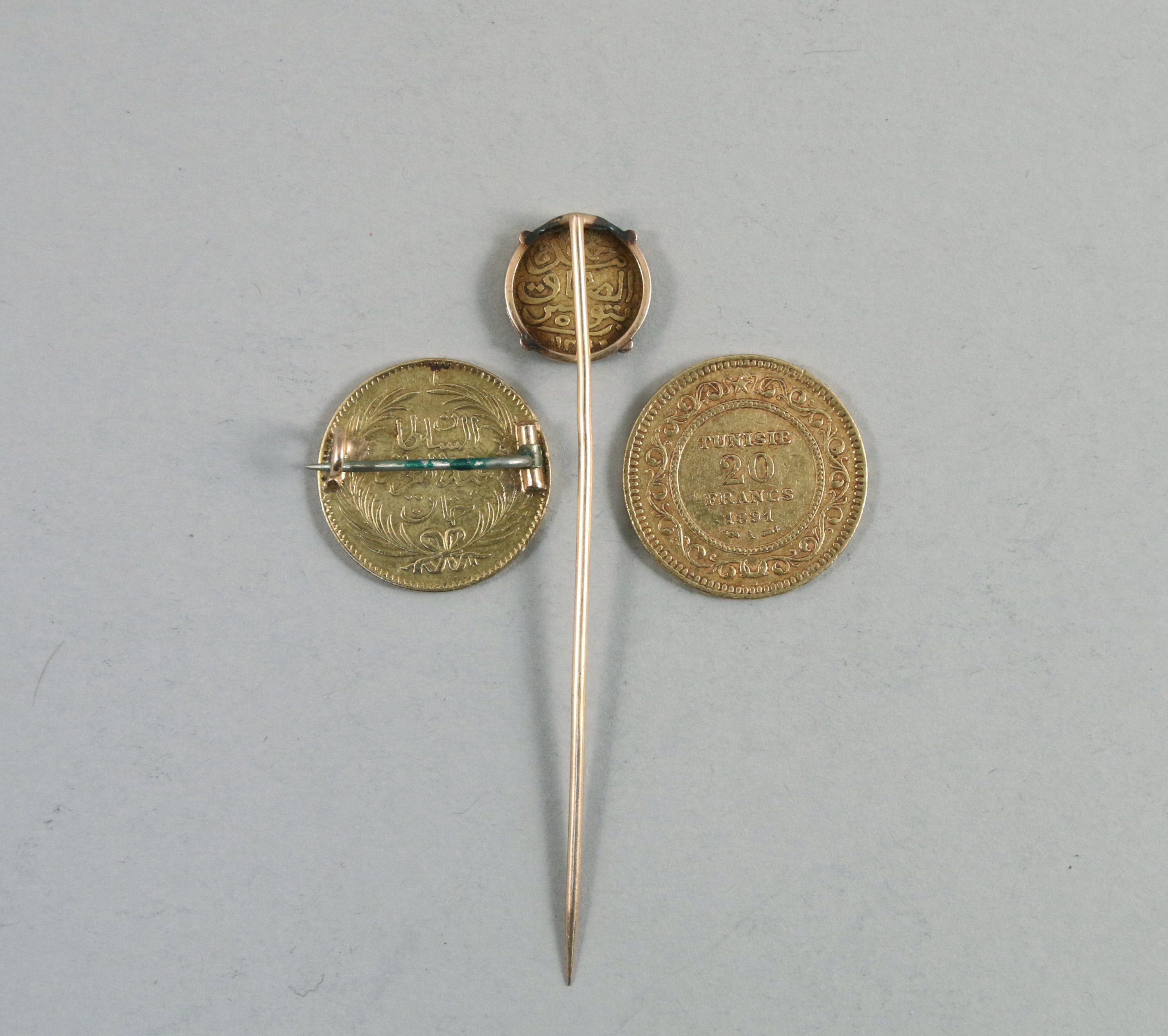 TUNISIE et AFRIQUE du NORD. Réunion de 3 monnaies or, dont: