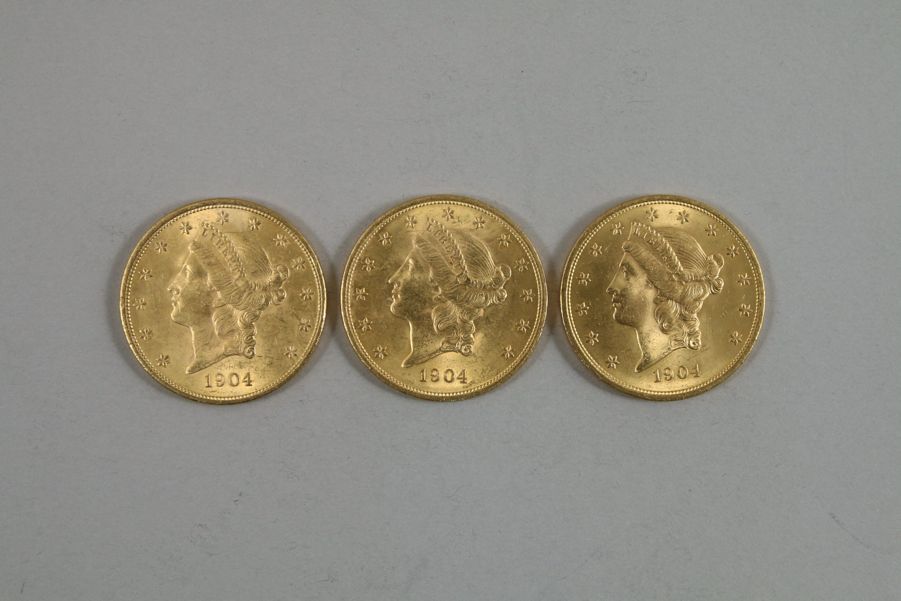 ÉTATS UNIS. 3 x 20 dollars or, 1904.