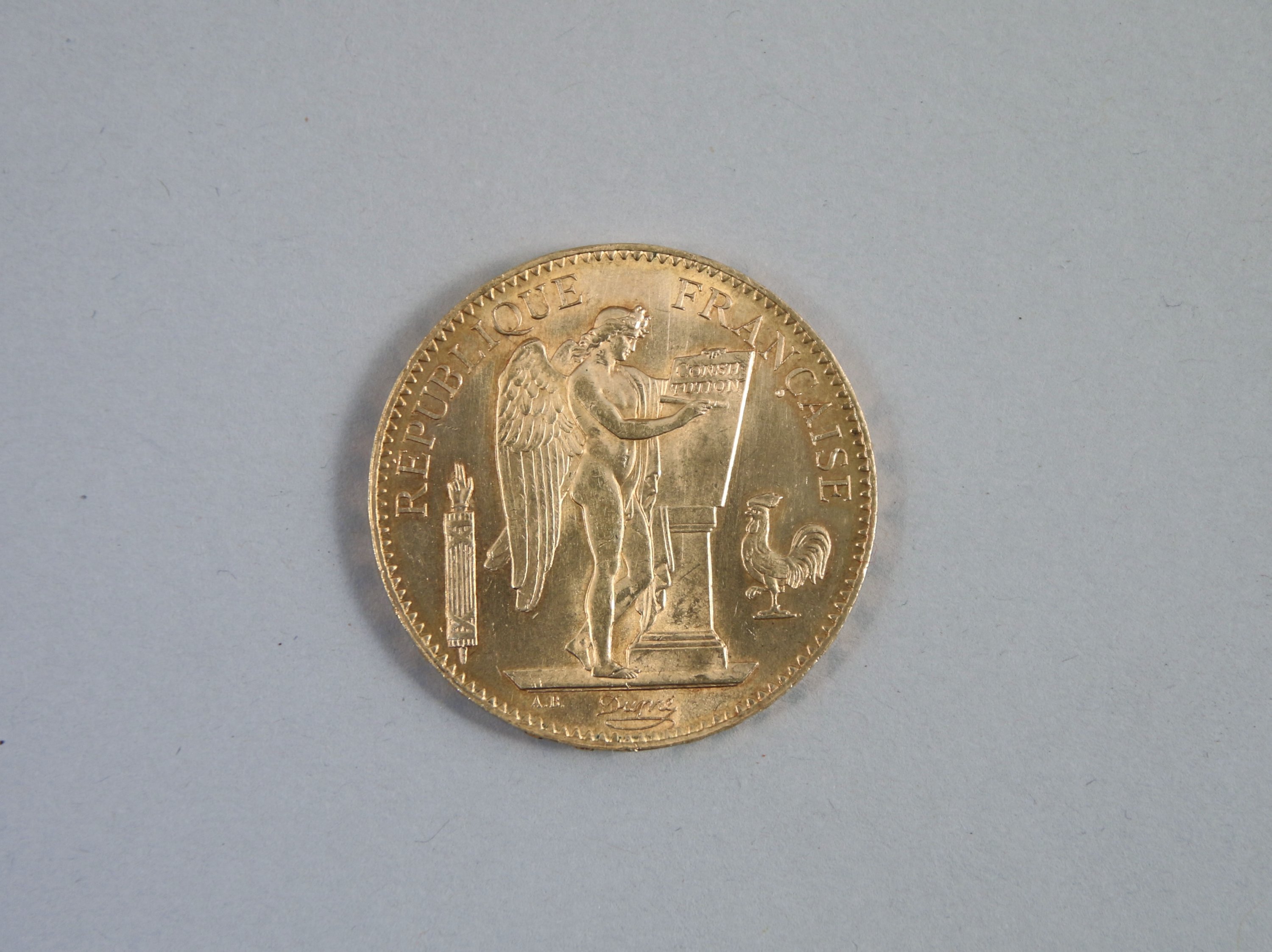 FRANCE. 100 F. or au GENIE, Paris, 1911, 2e type de tranche frappé de 1907 à 1914.