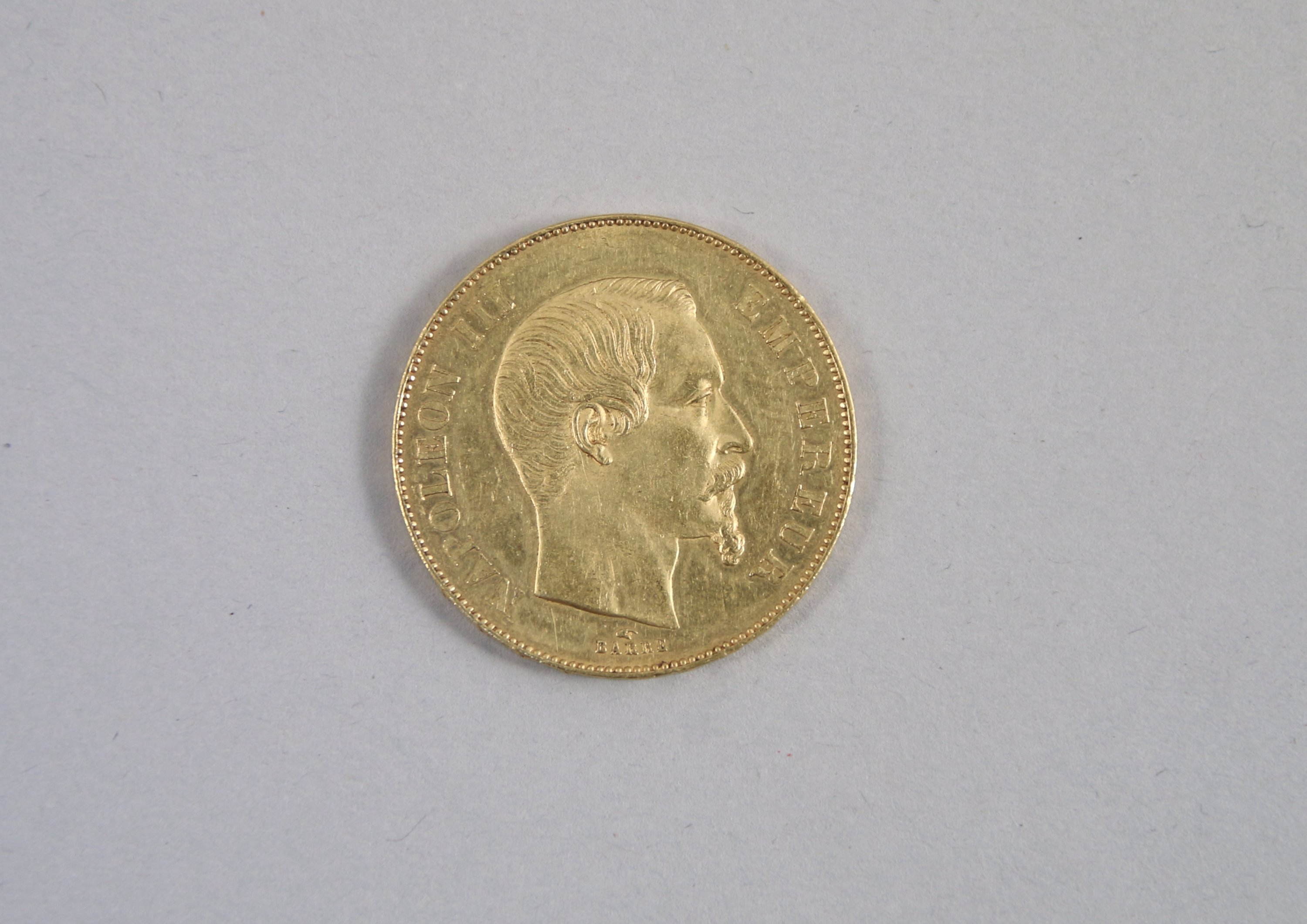 FRANCE. 50 F. or. Napoléon III non lauré, Paris, 1855