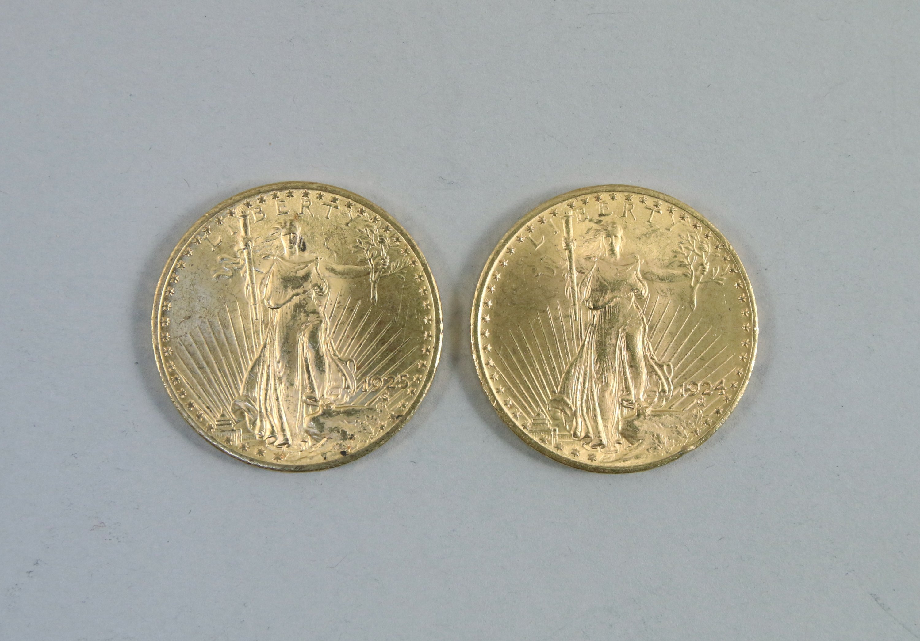 ÉTATS UNIS. 2 x 20 dollars or : 1924, 1925