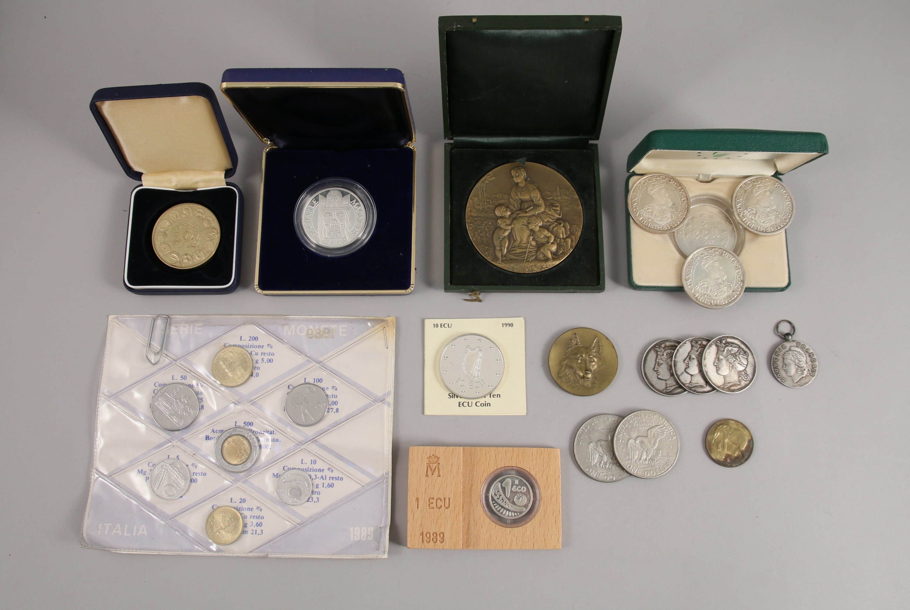 VARIA. LOT comprenant divers DIVERS MÉDAILLES et PIÈCES de MONNAIES principalement France et Suisse en bronze, cupronikel, cuivre, certaines en argent.