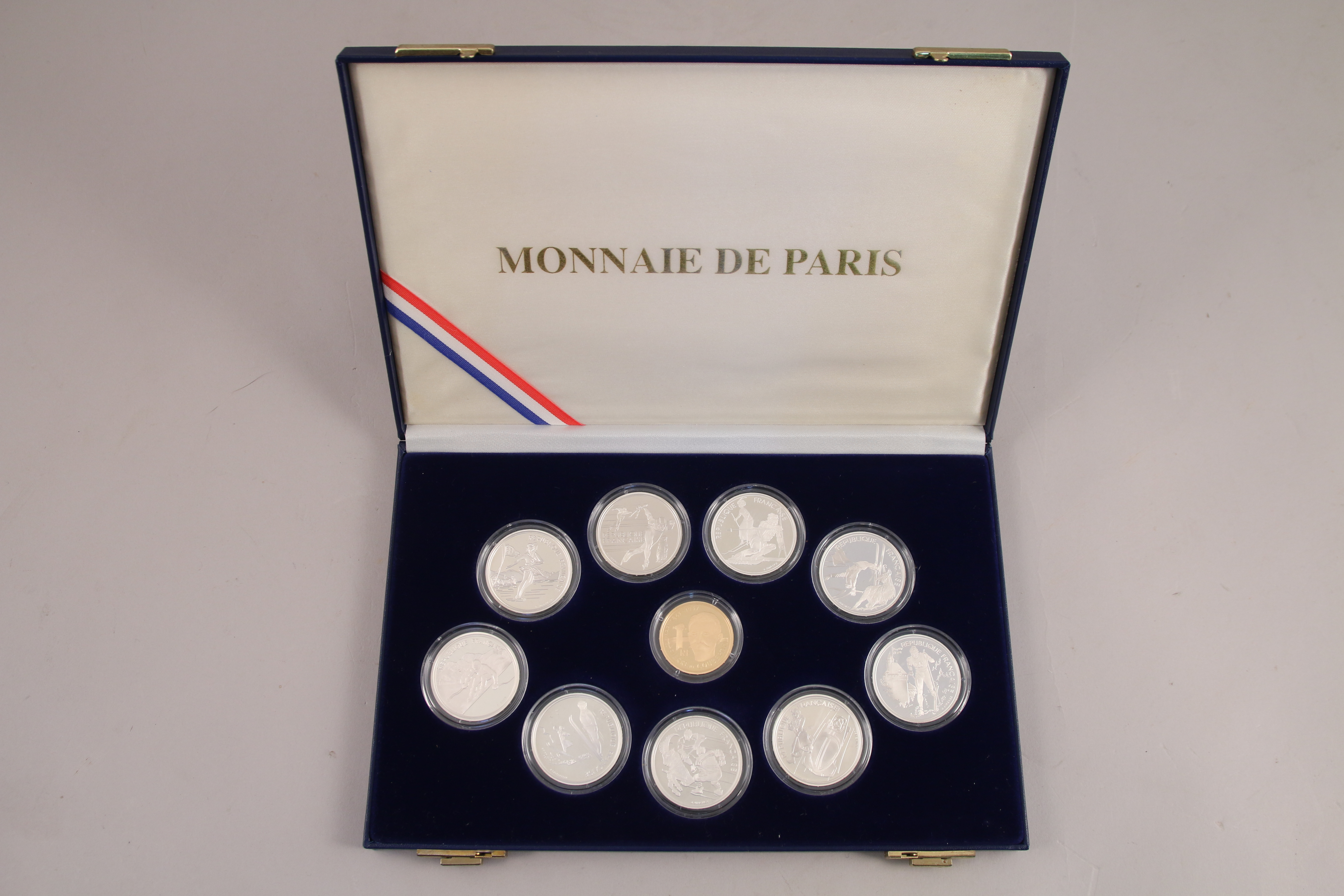MONNAIE DE PARIS. Coffret Alberville 92, comprenant 9 pièces de 100 francs en argent et une pièce de 500 francs en or.