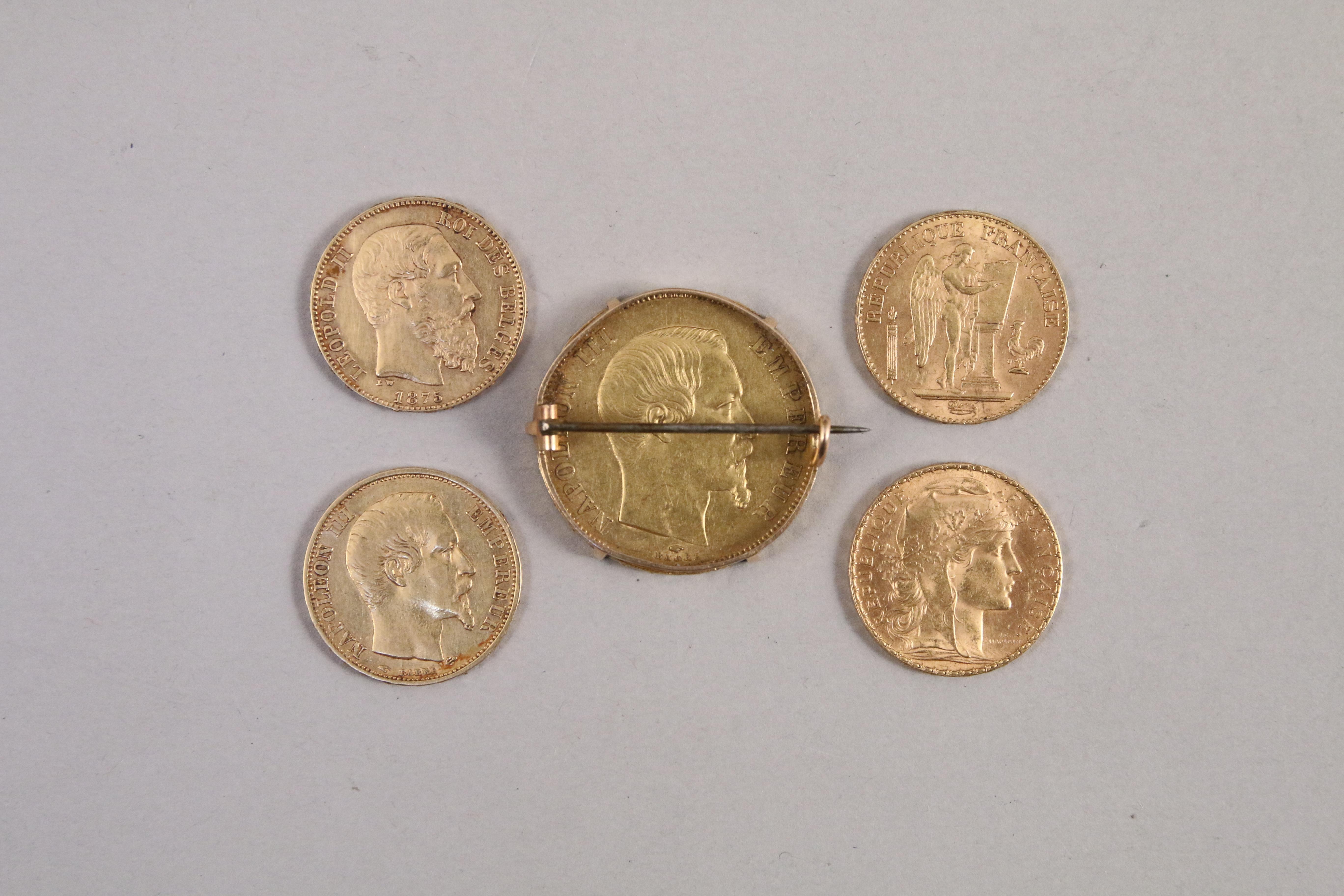 FRANCE et BELGIQUE. 5 MONNAIES OR