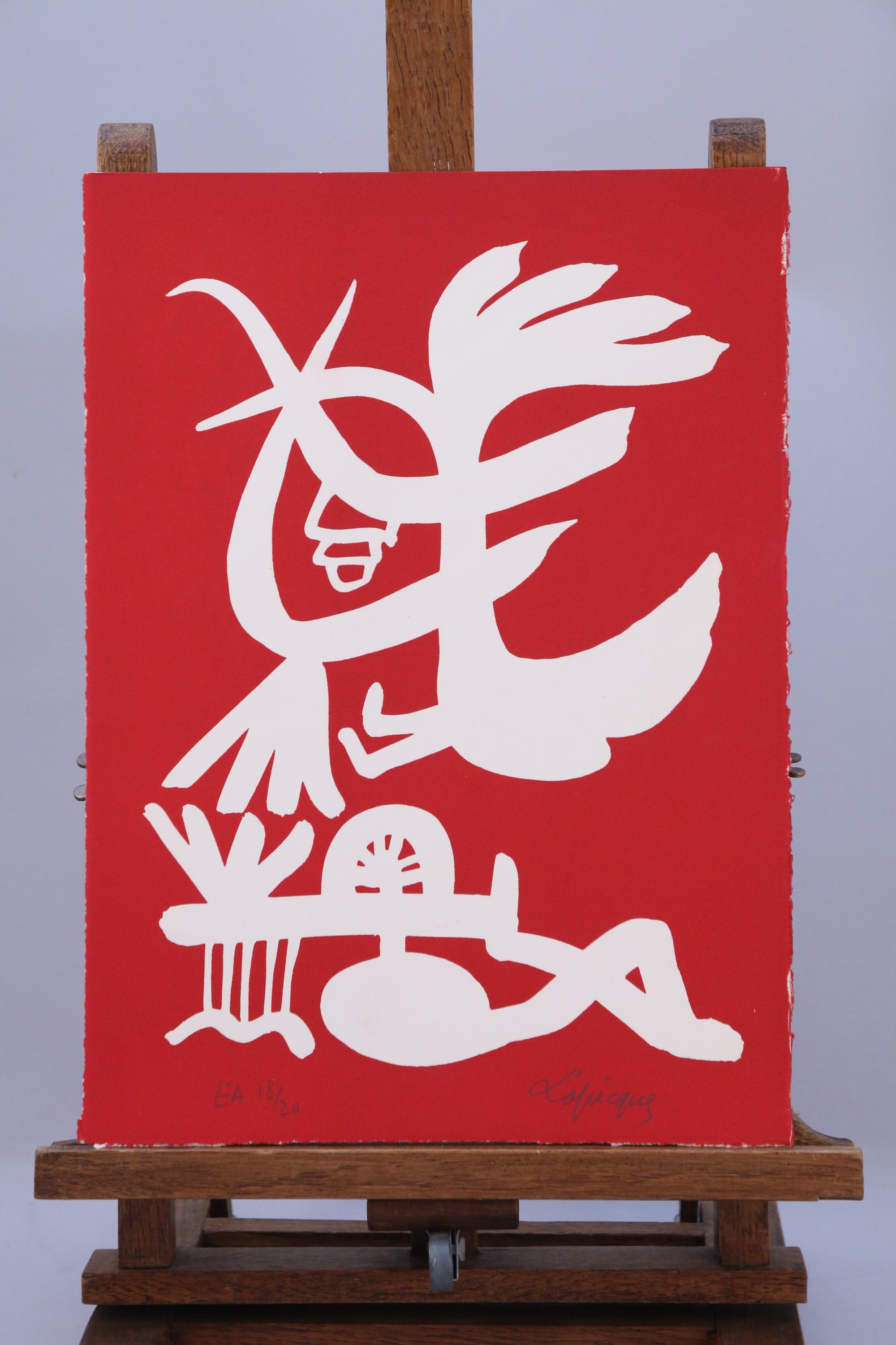 "Popée", "Le Fol" 1968 et 12 autres sujets en blanc sur papier couleur. Dont 2 doubles faces non signés l'une titrée "Cyrano de Bergerac".