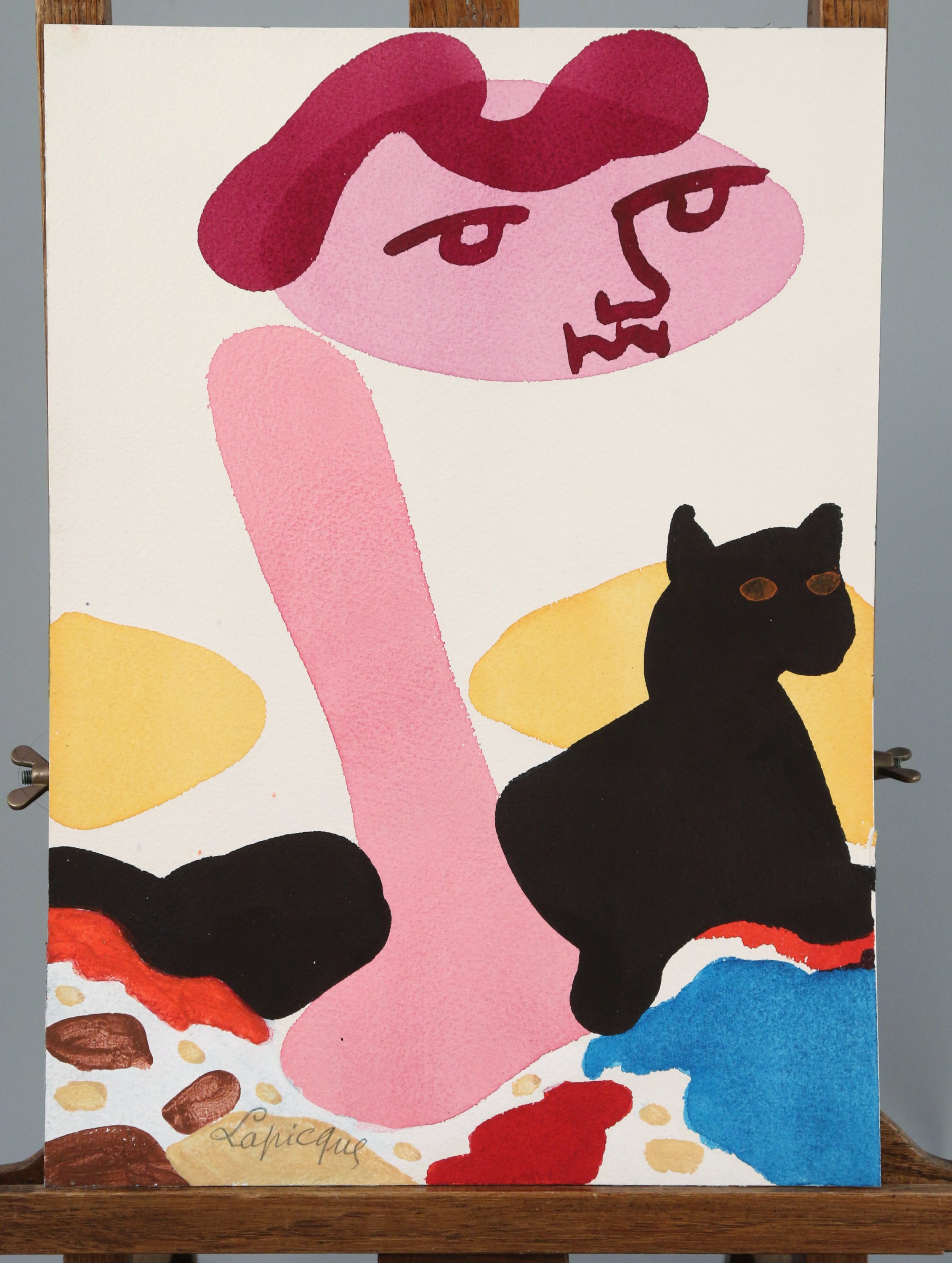 Charles LAPICQUE (Théizé, 1898 - Orsay, 1988)Figure au chat, 1974.Acrylique...