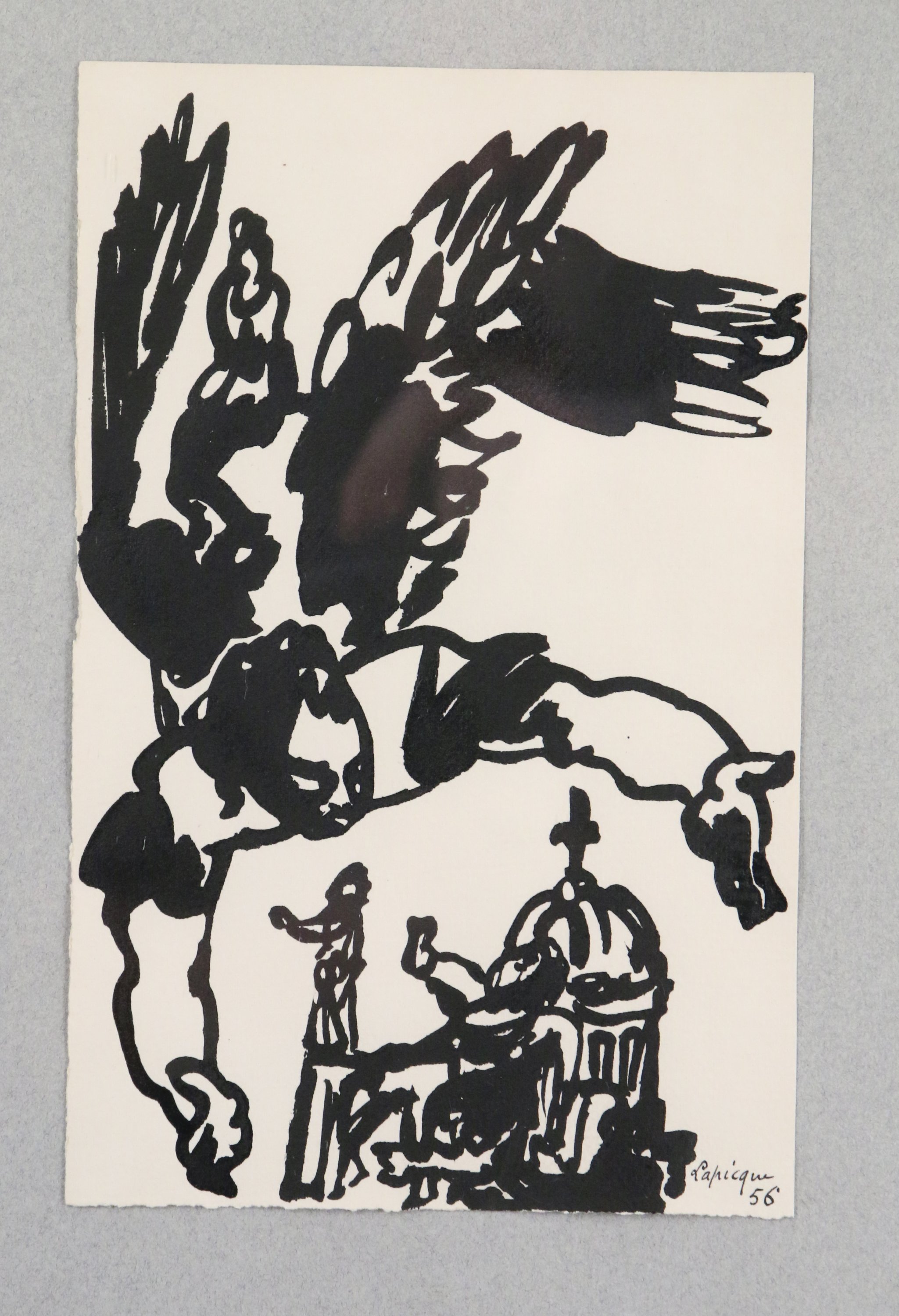 Bibliographie: Charles ESTIENNE, "Dessins de Lapicque, La figure, éds. Galantis, 1959, à rapprocher d'un dessin illustré pleine page, "Venise, 1956".