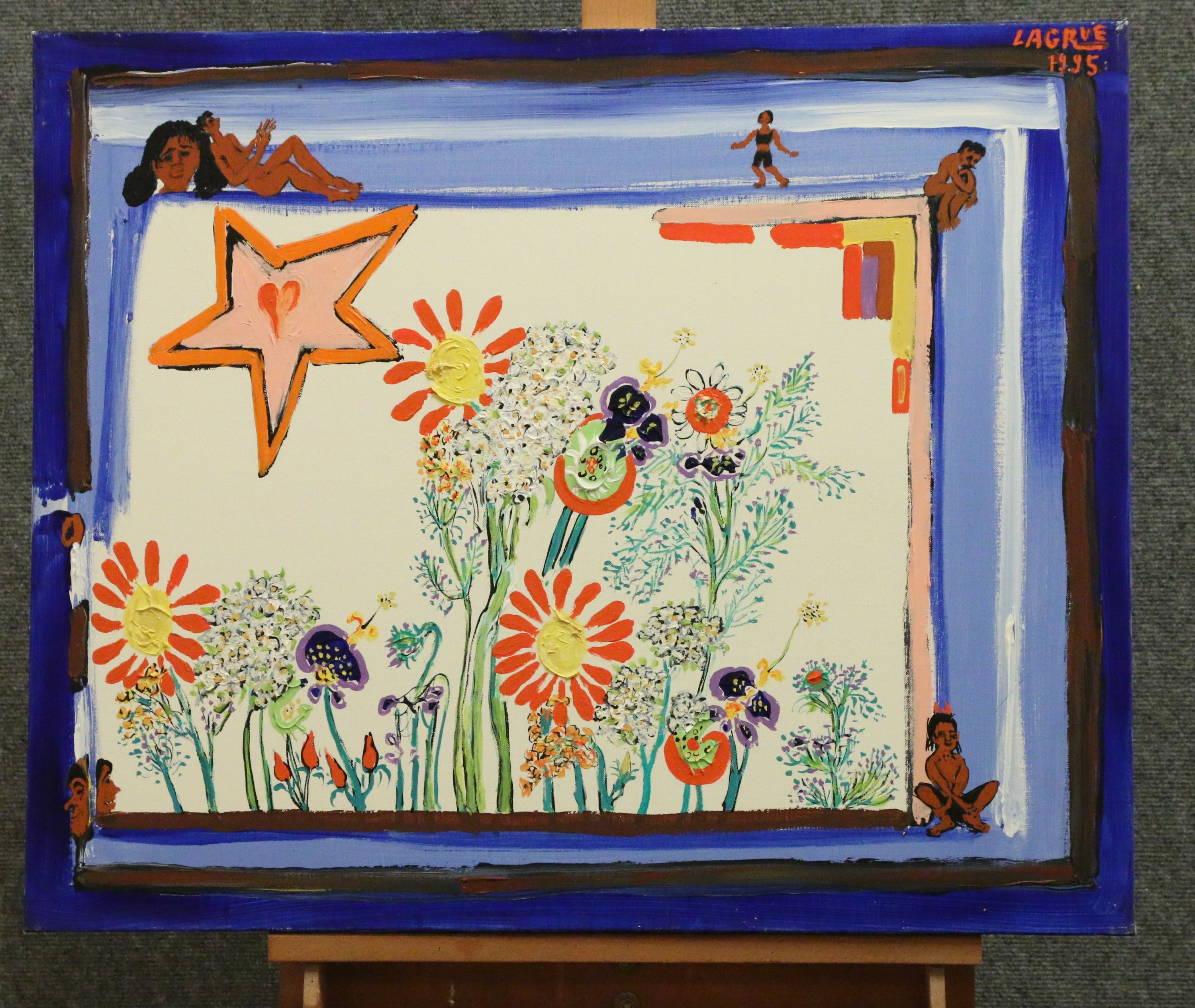 Toile signée en haut à droite, titrée au dos et datée 1995.