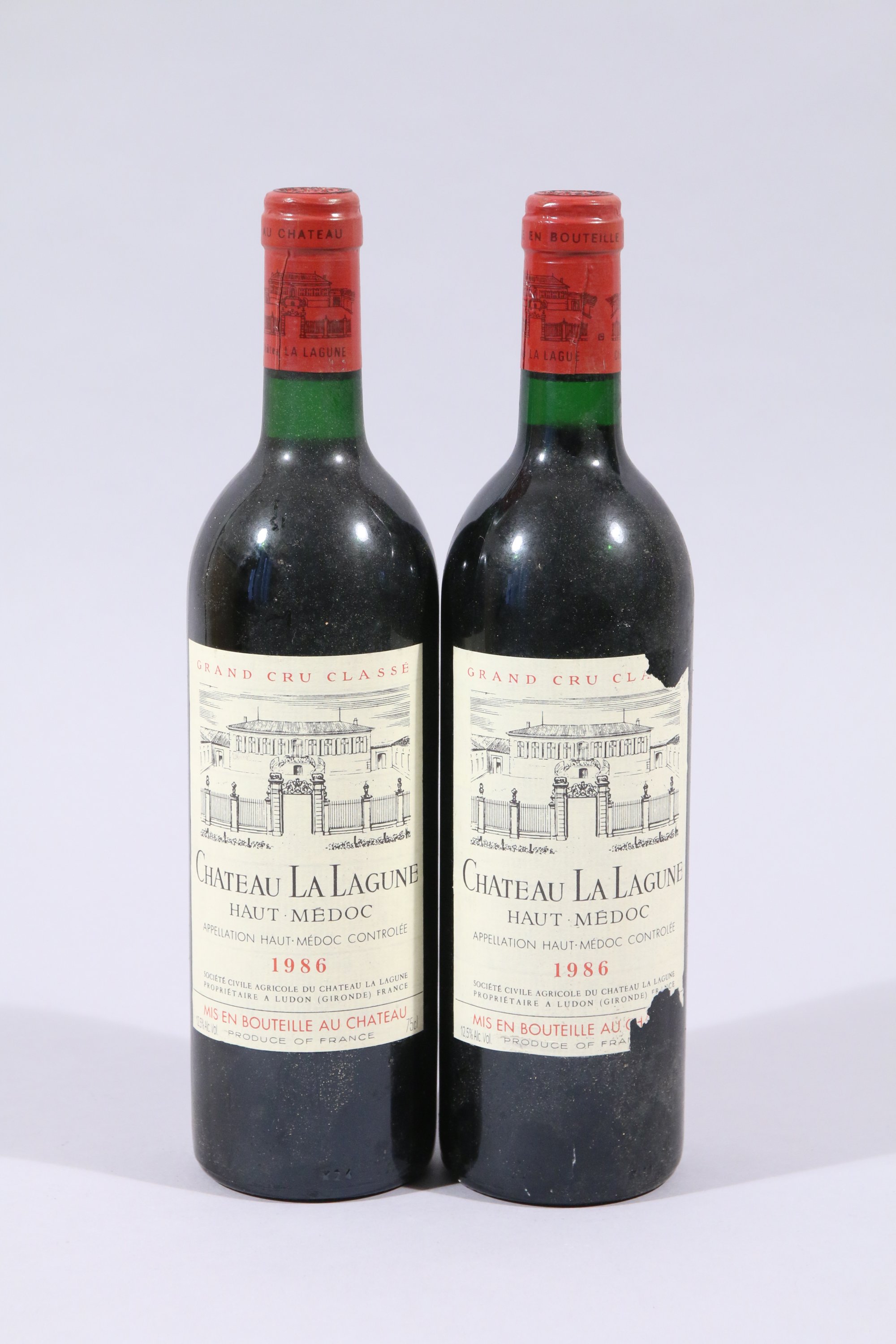 HAUT-MÉDOC, Château La Lagune/Grand Cru Classé, 1986, 2 bouteilles, BG / TLB, étiquette déchirée.