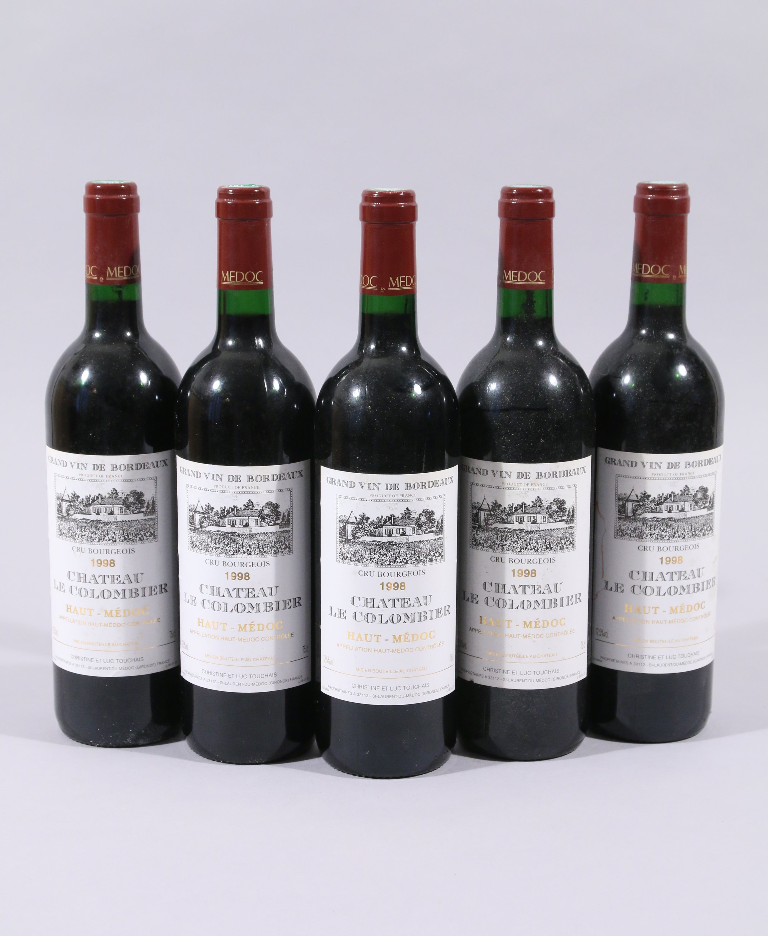 HAUT-MÉDOC, Château Le Colombier/Cru bourgeois , 1998, 5 bouteilles, N / BG, une étiquette tachée.