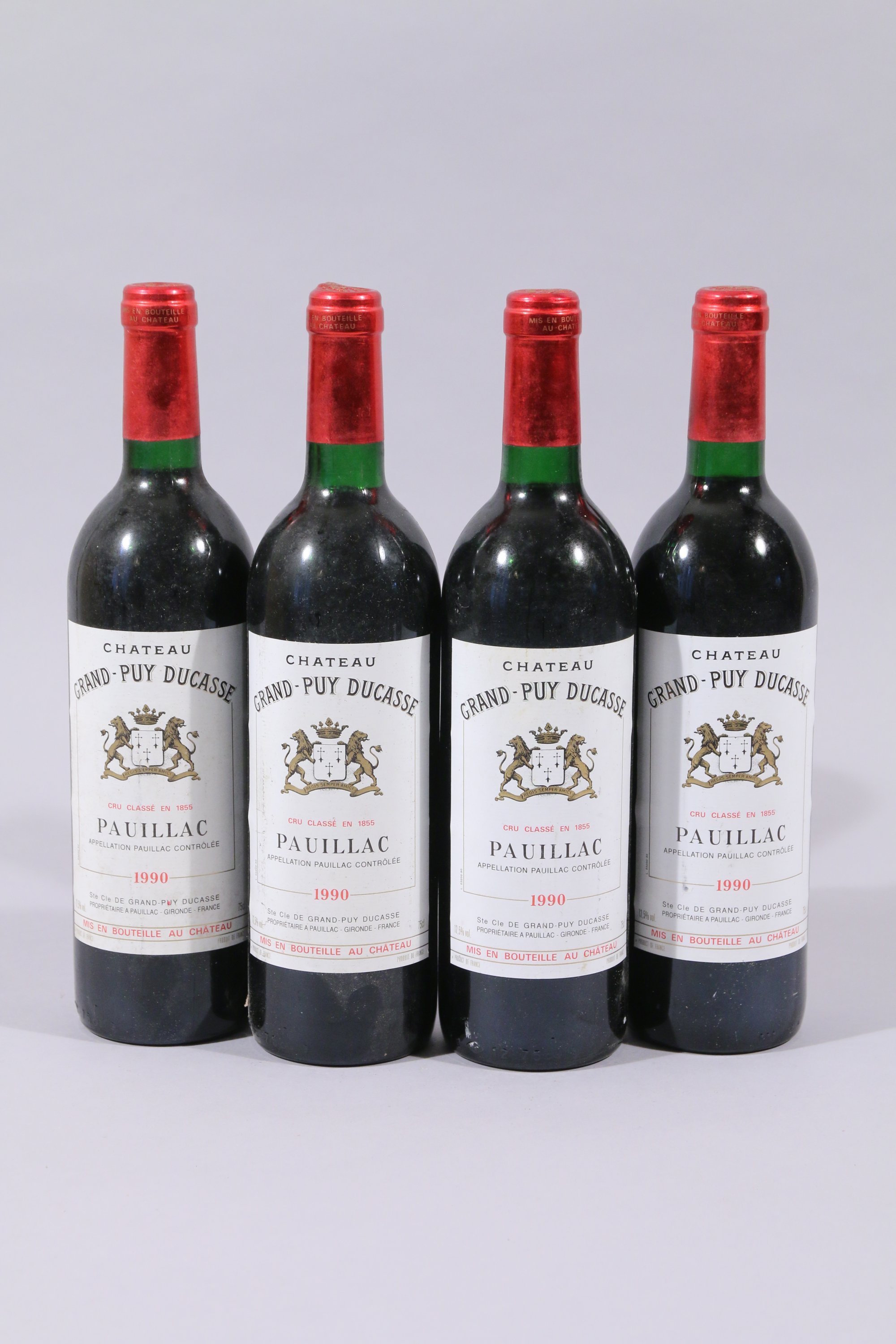 PAUILLAC, Château Grand-Puy Ducasse/Cru classé, 1990, 4 bouteilles, TLB, taches.