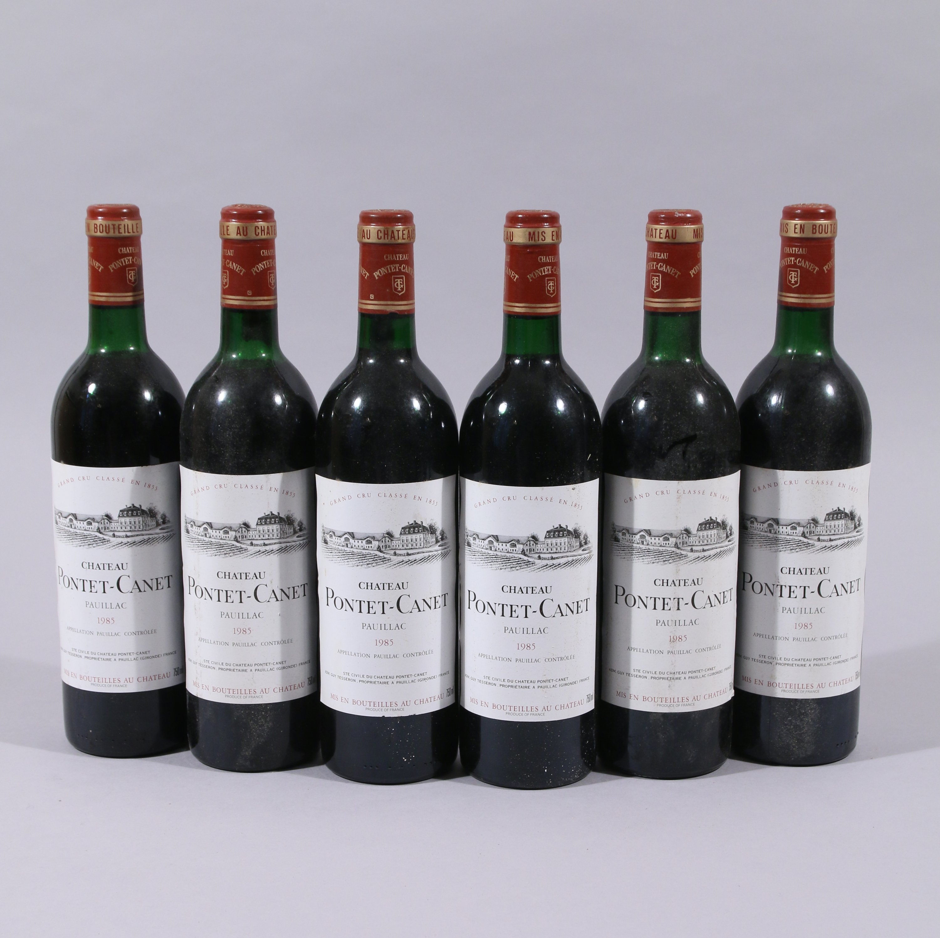 PAUILLAC, Château Pontet-Canet, 1985, 6 bouteilles, TLB / LB, taches.