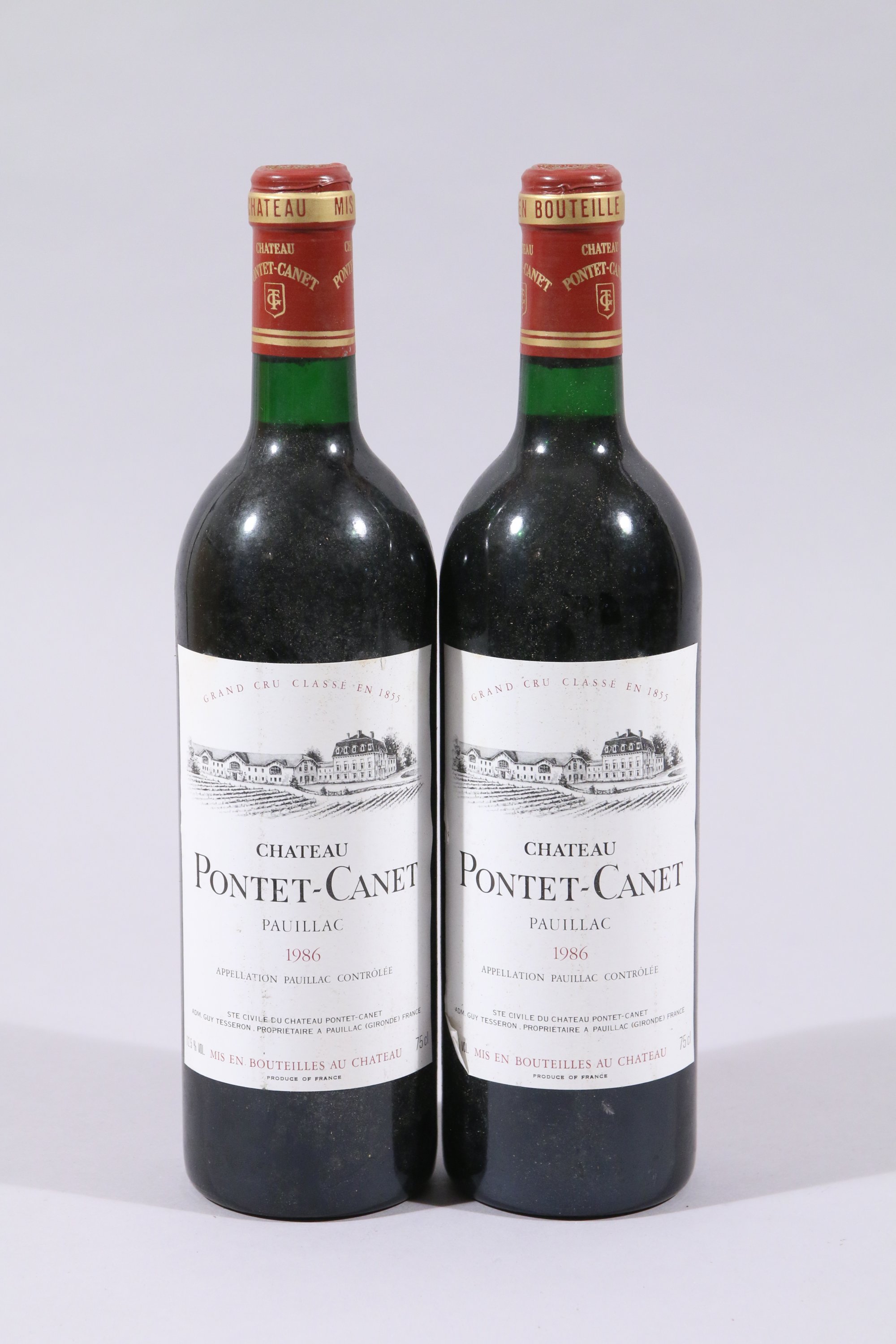 PAUILLAC, Château Pontet-Canet, 1986, 2 bouteilles, TLB, étiquette légèrement détachée.
