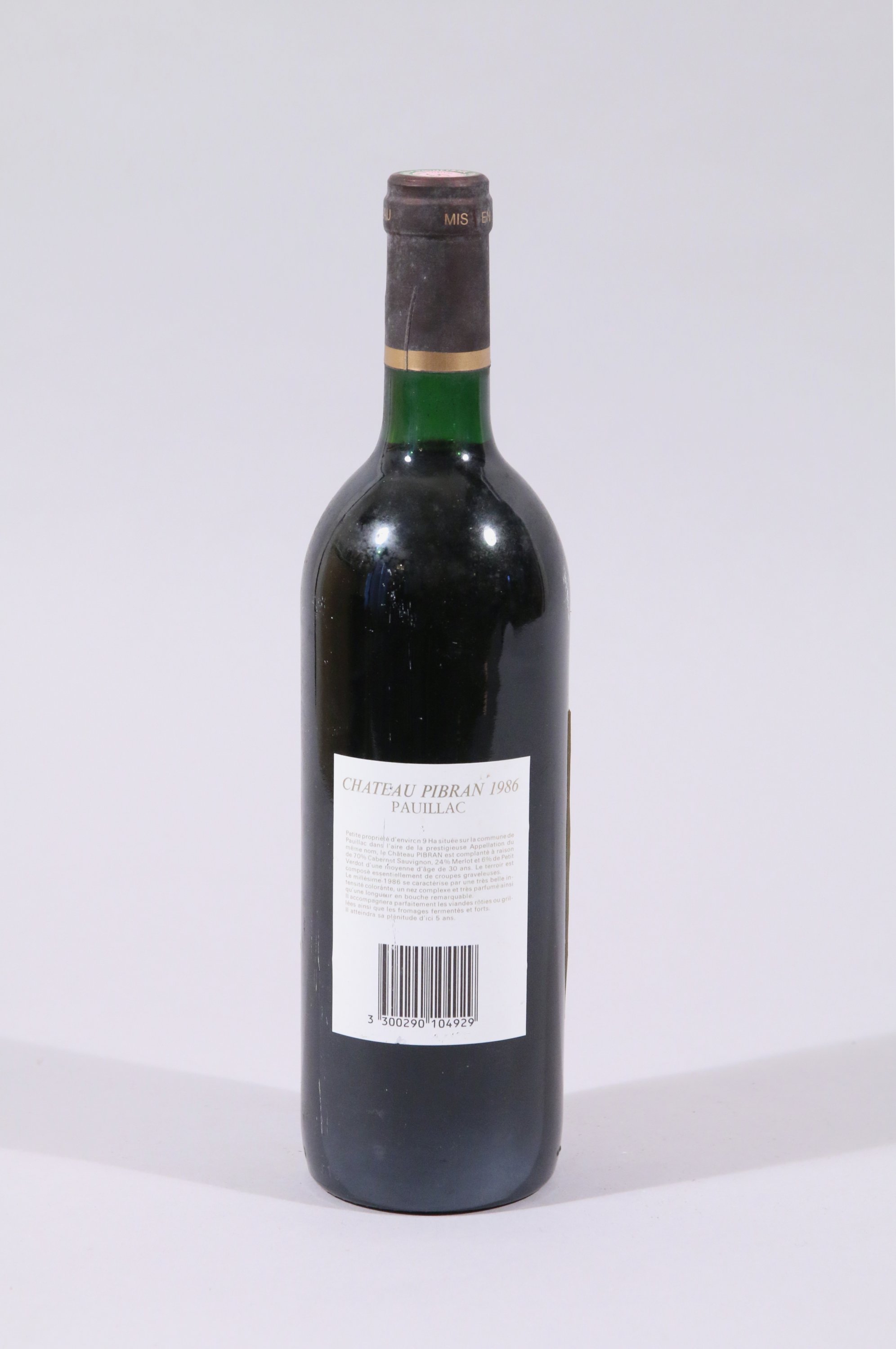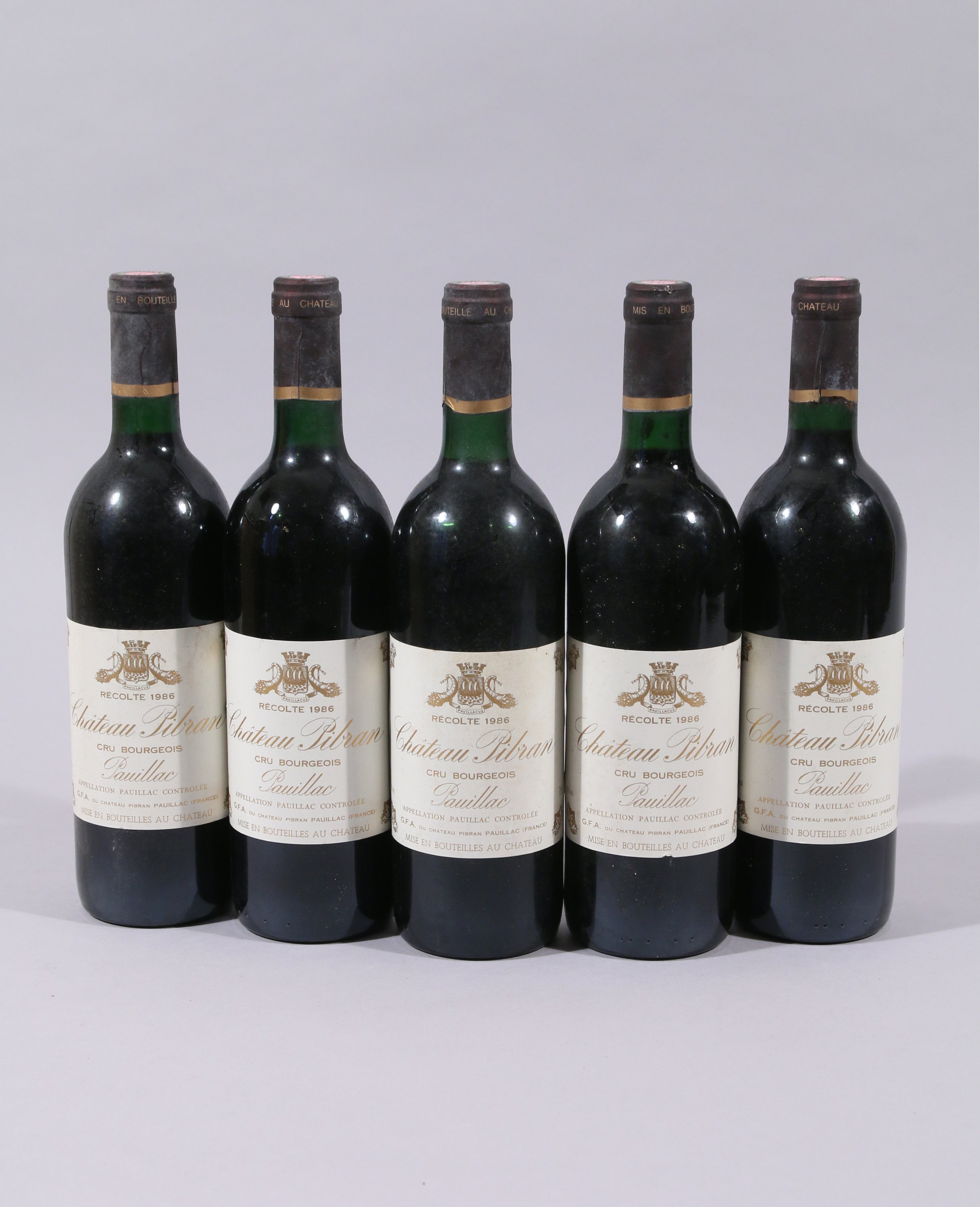 PAUILLAC,Château Pibran/Cru bourgeois, 1986, 5 bouteilles, TLB / LB.
