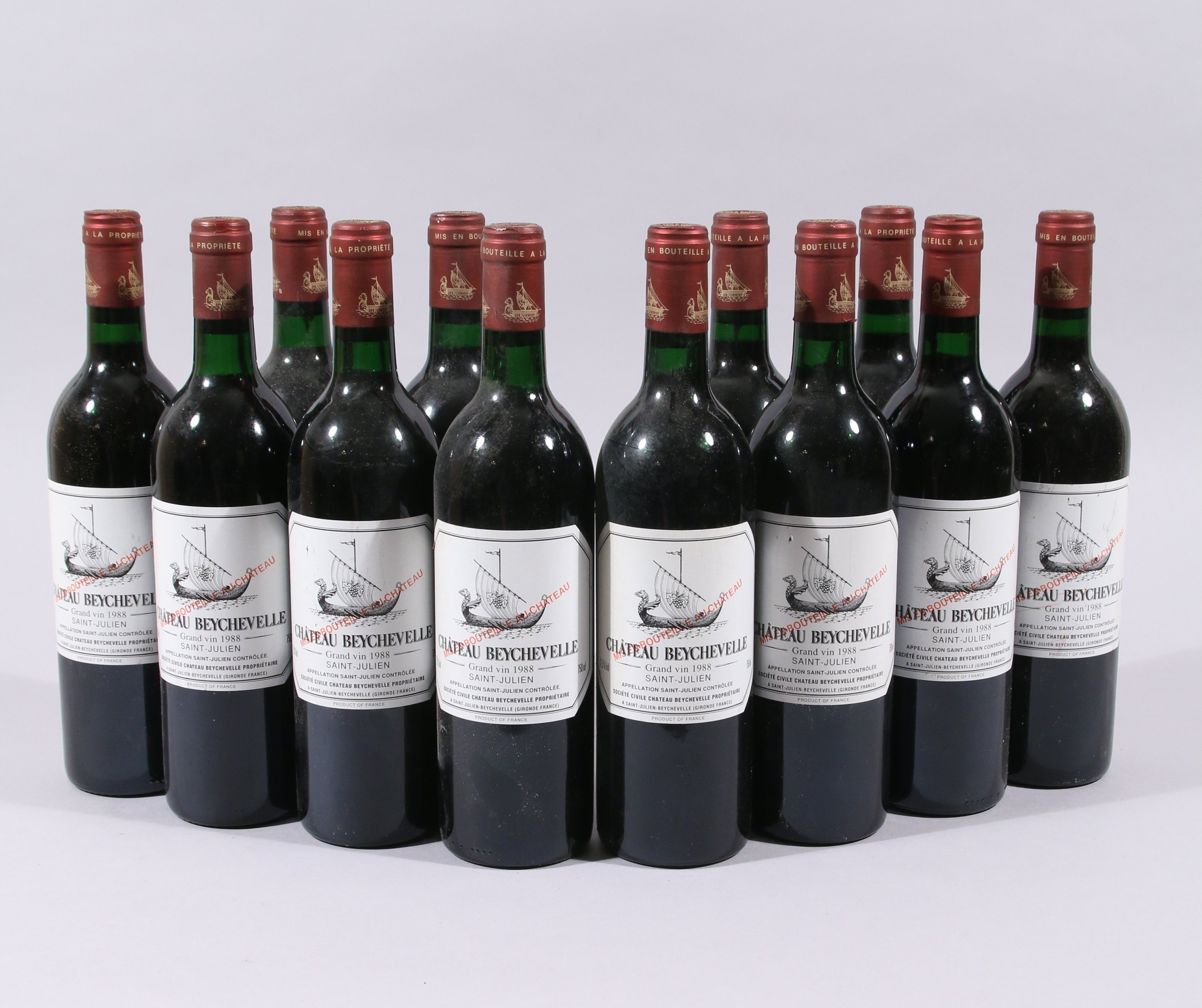 SAINT-JULIEN, Château Beychevelle/Grand Cru Classé, 1988, 12 bouteilles, BG à LB, petits accrocs.