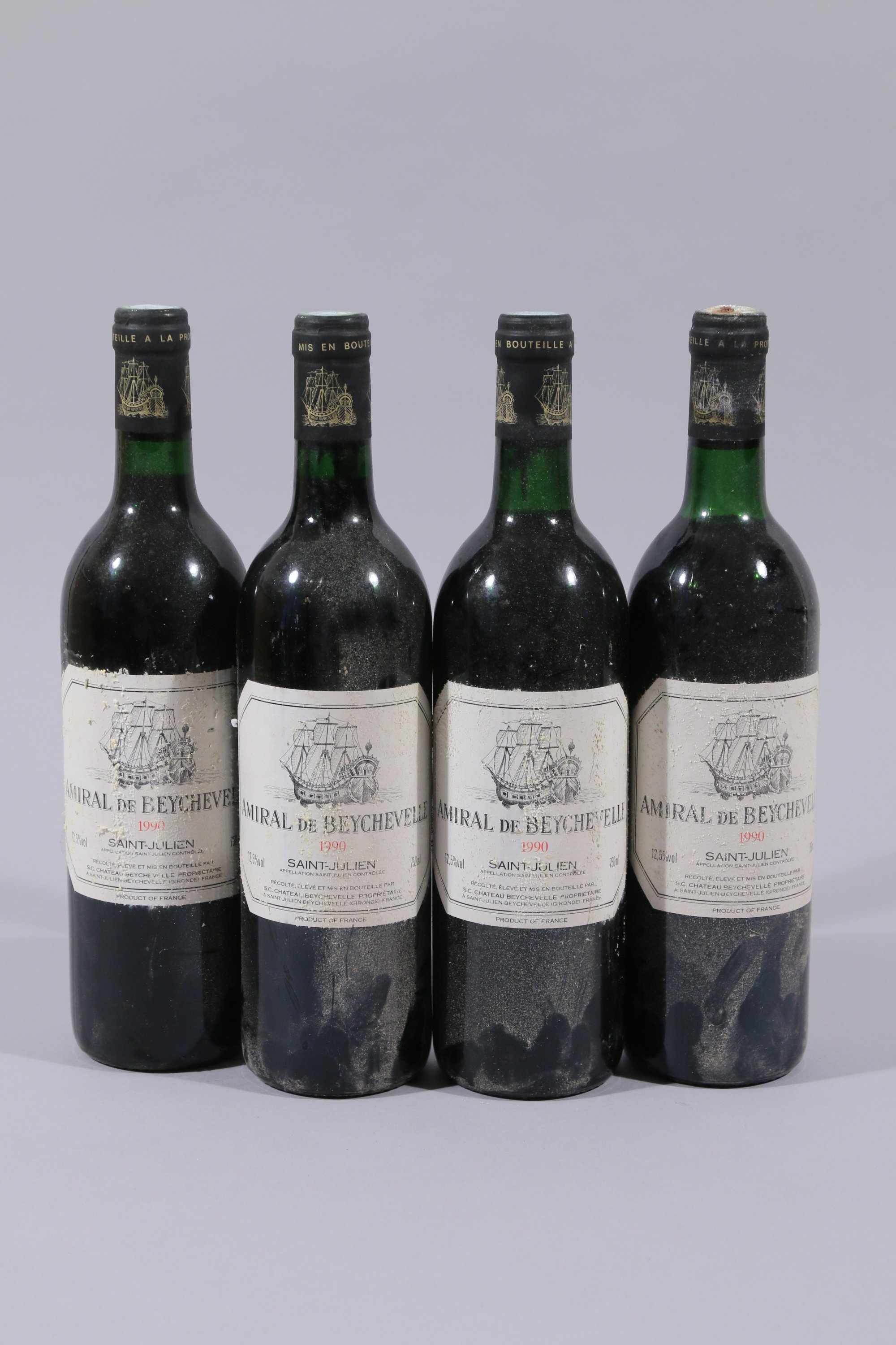 SAINT-JULIEN, Château Beychevelle/Grand Cru Classé, 1990, 4 bouteilles, BG à LB, étiquette abimée.