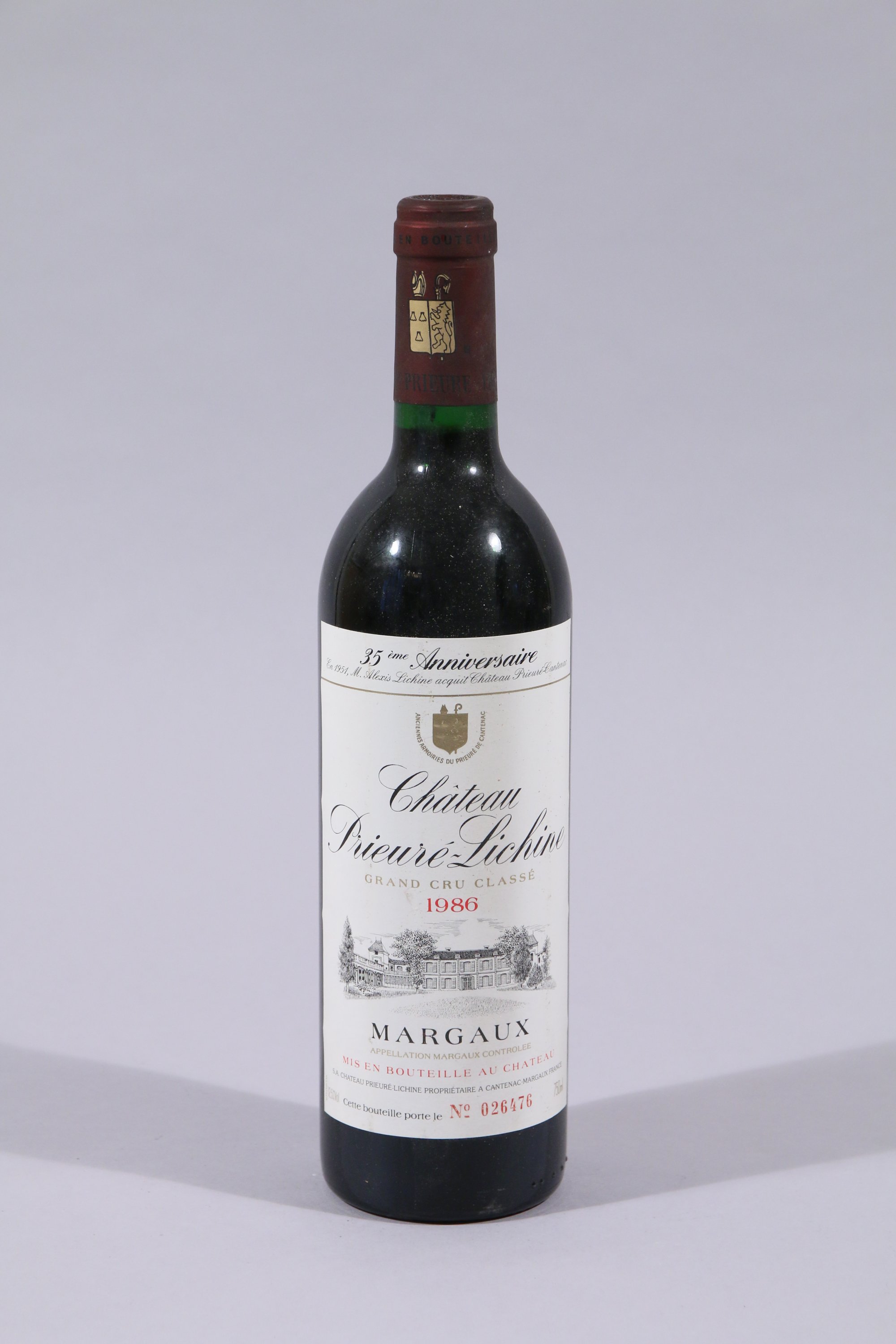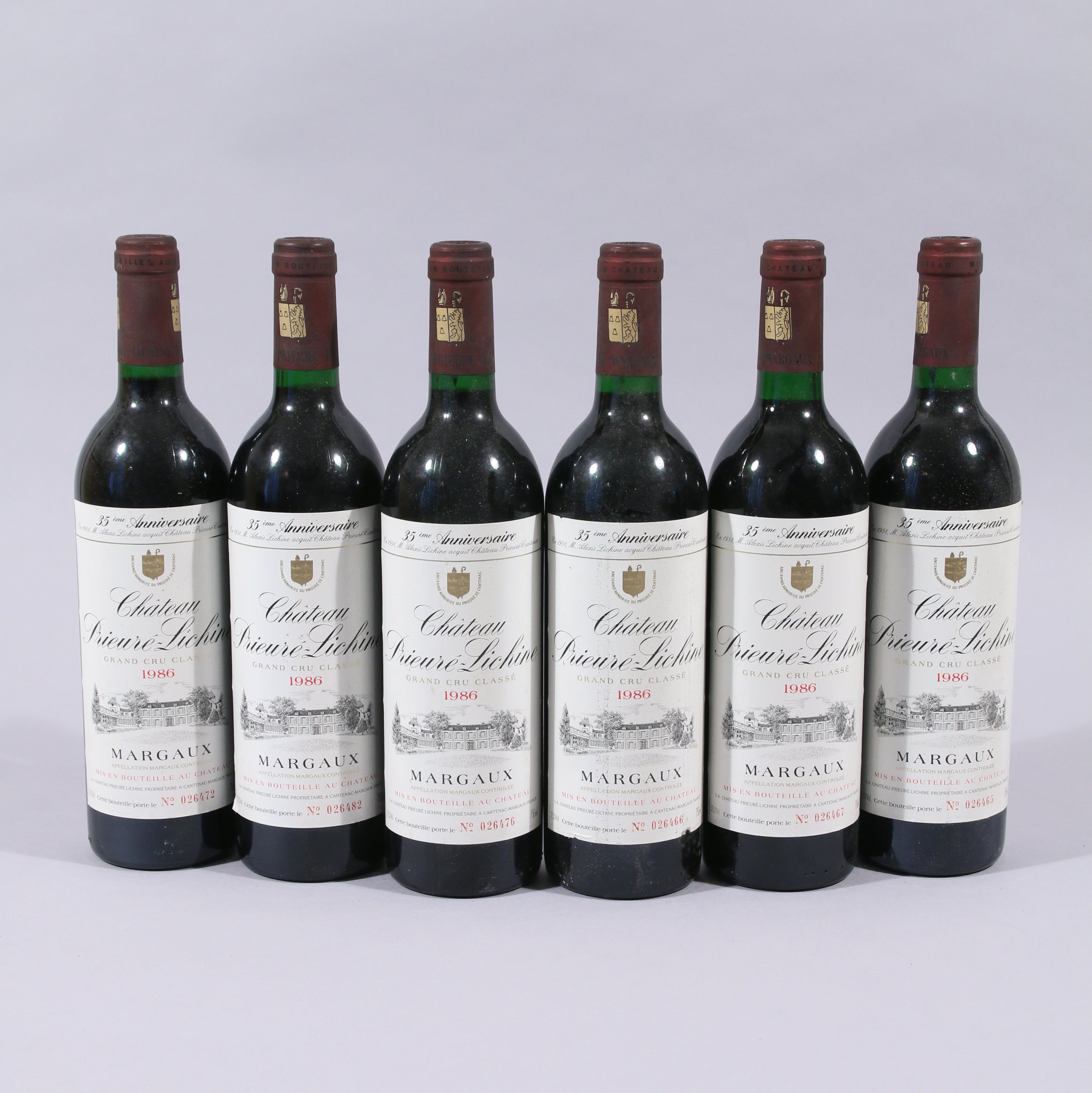 MARGAUX, Château Prieuré-Lichine/Grand Cru Classé, 1986, 6 bouteilles, N, petits accrocs.