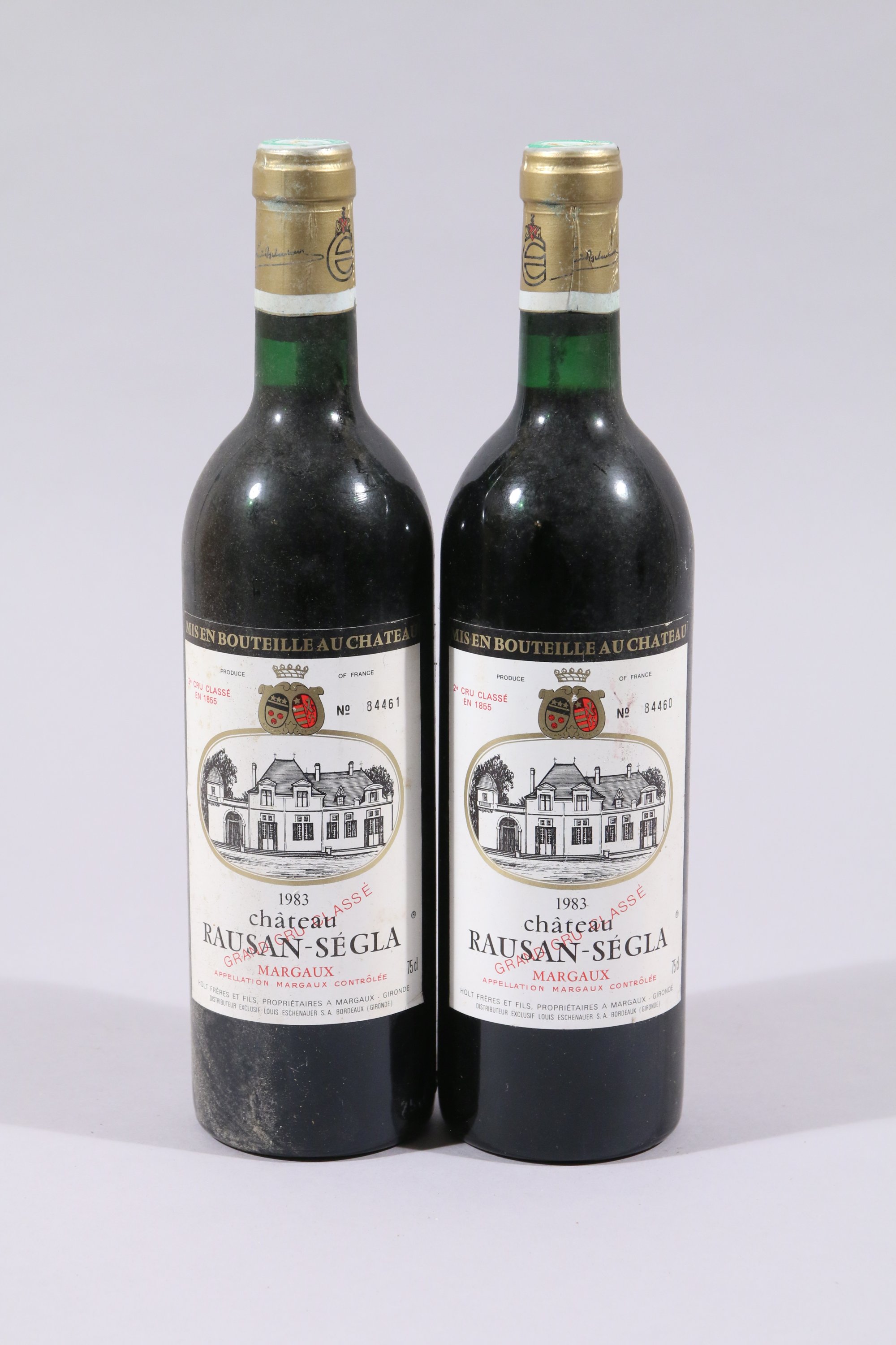 MARGAUX, Château Rausan-Ségla/2e Cru Classé, 1983, 2 bouteilles, BG, bouchons affaissés.