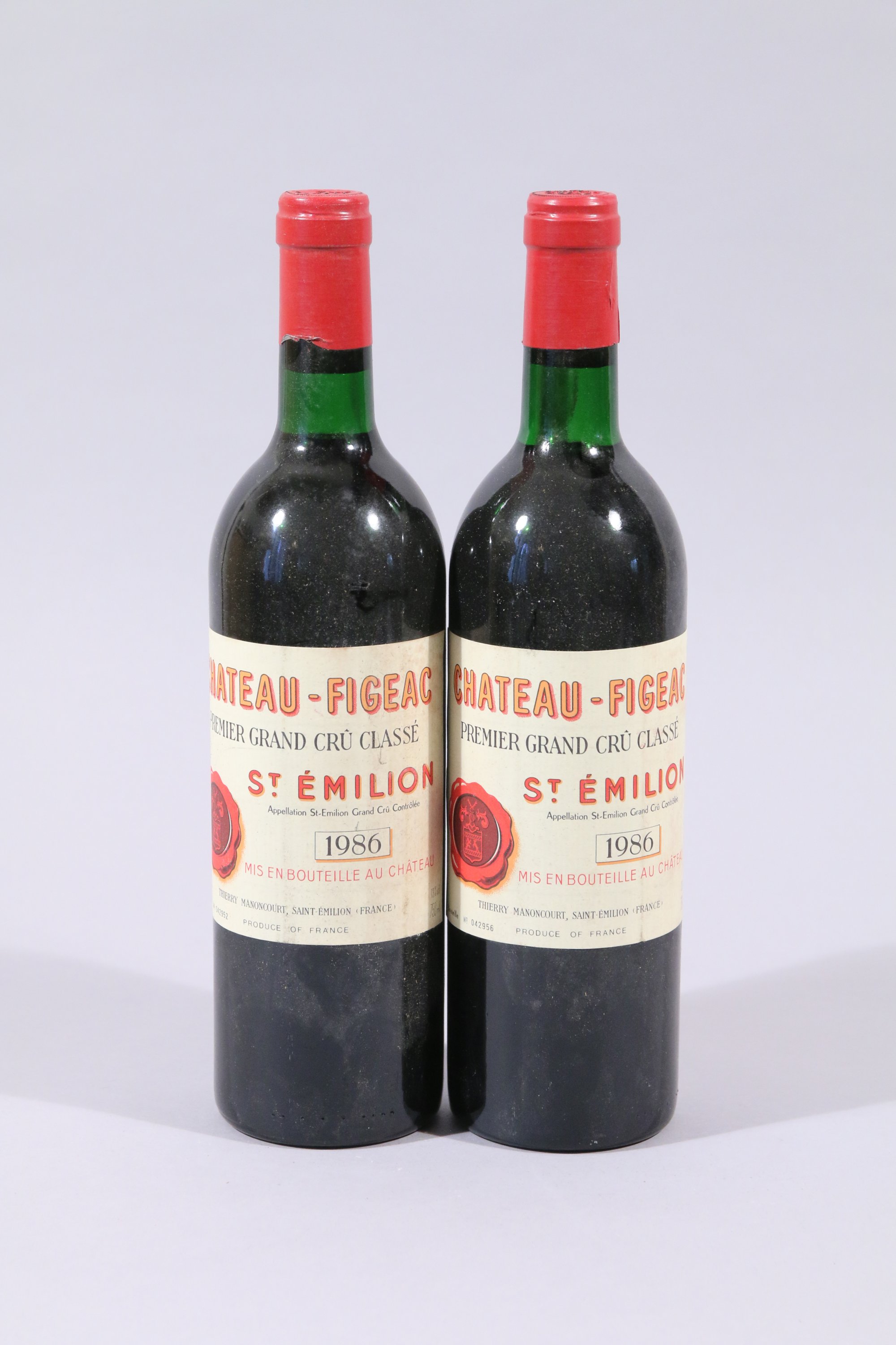 SAINT-EMILION, Château-Figeac/1er Grand Cru Classé B, 1986, 2 bouteilles, TLB, étiquettes tachées.