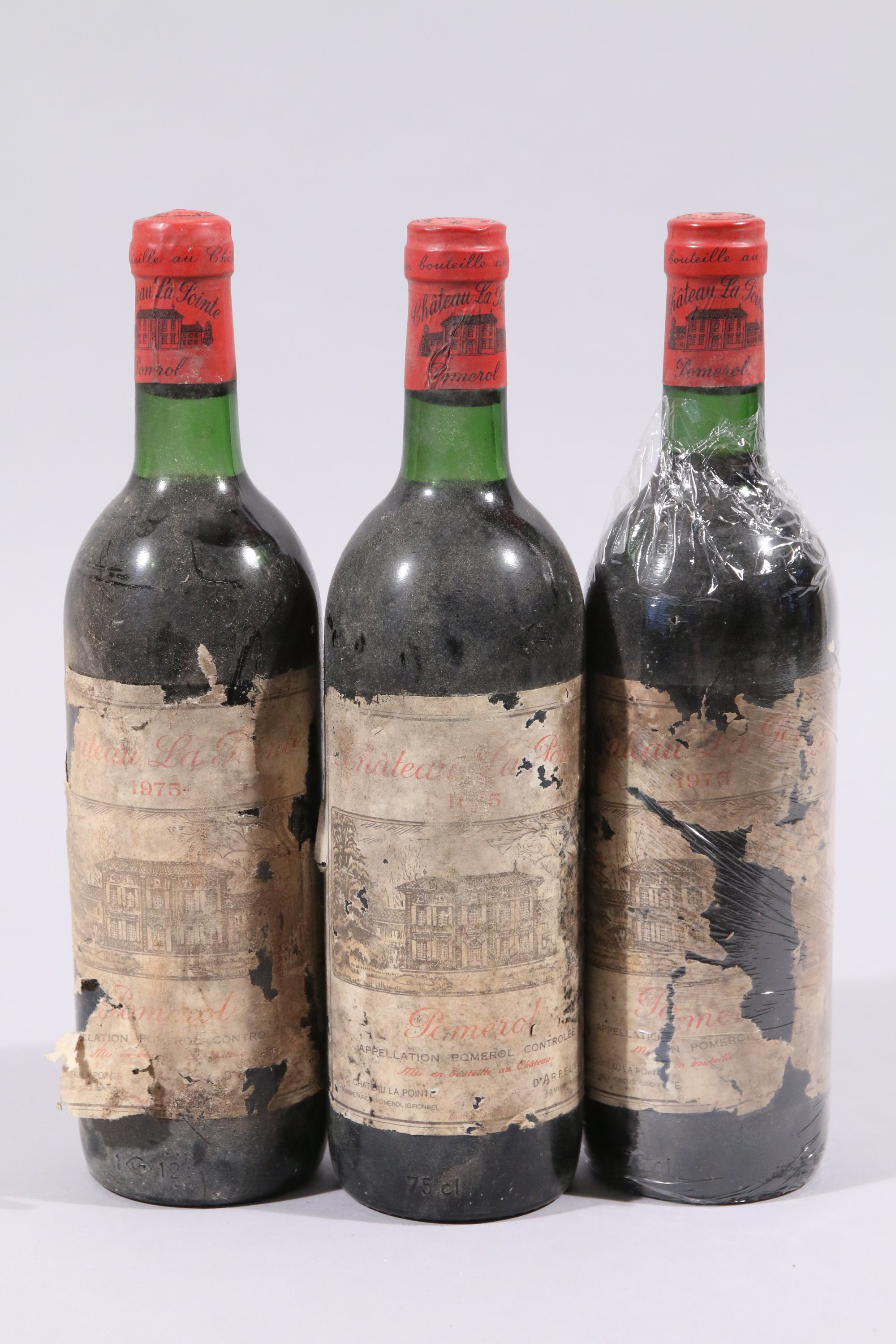 POMEROL, Château La Pointe, 1975, 3 bouteilles, TLB, étiquettes en très mauvais état.