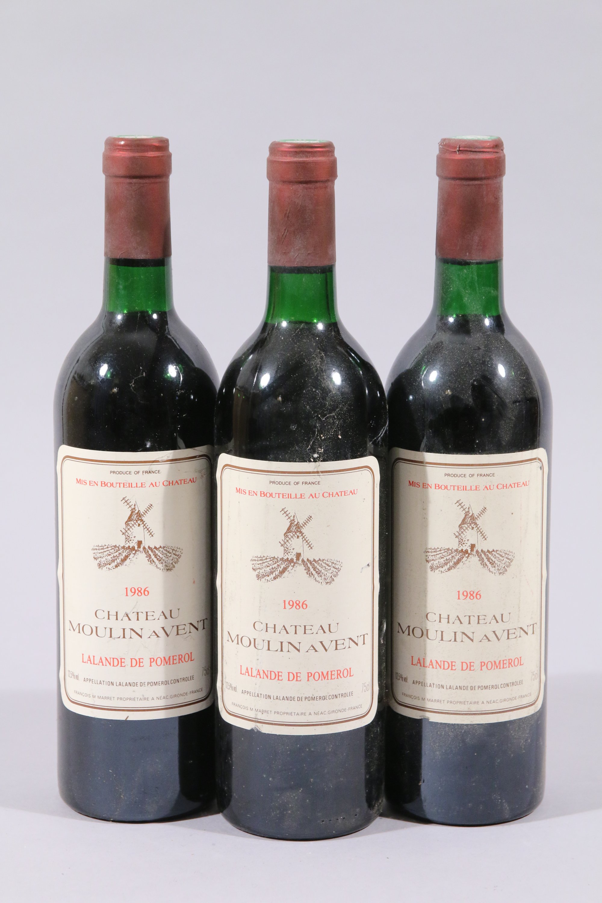 LALANDE DE POMEROL, Château Moulin à vent, 1986, 3 bouteilles,...